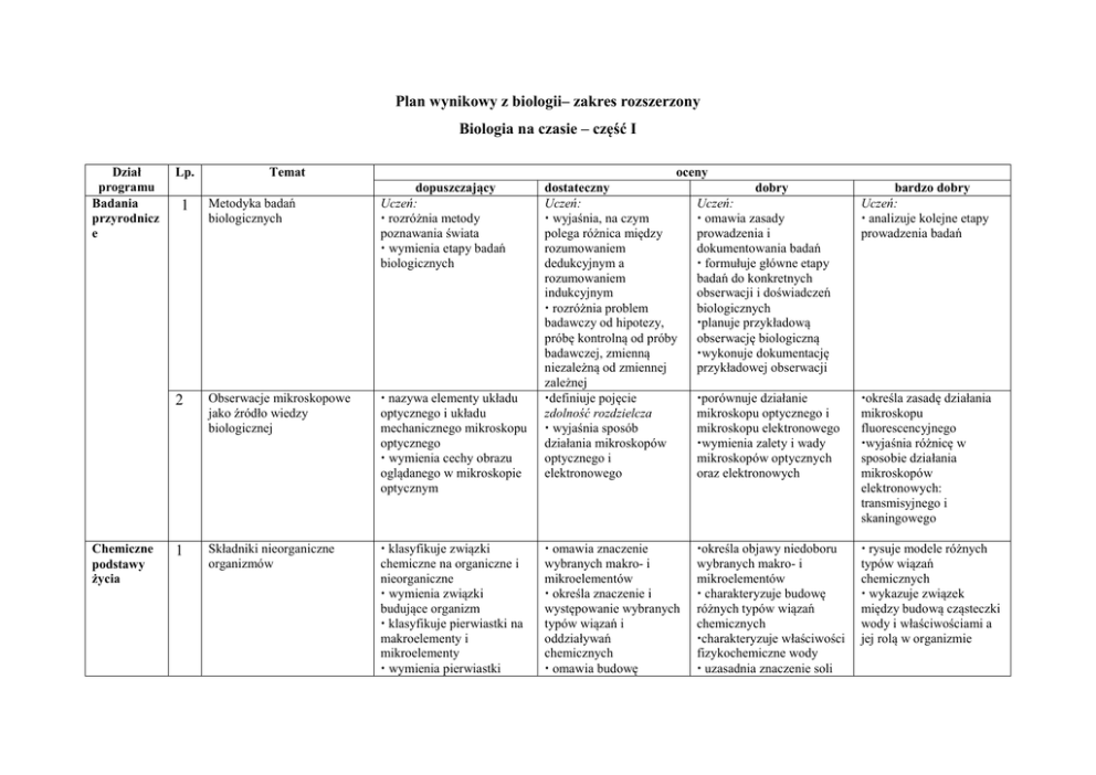 Plan wynikowy z biologii