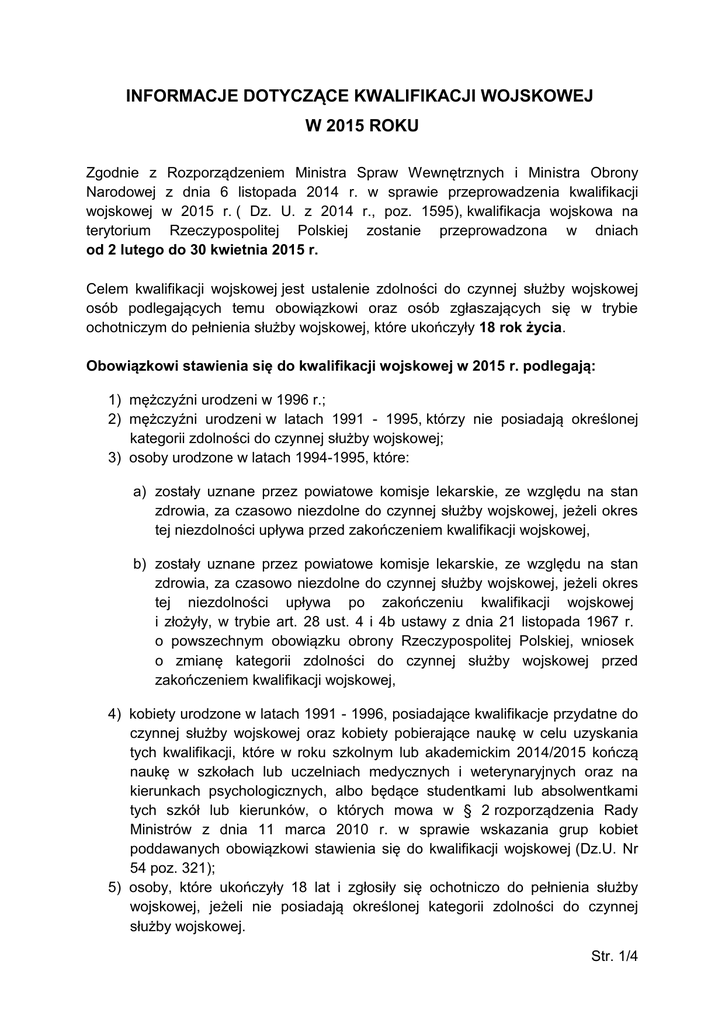 informacje dotyczące kwalifikacji wojskowej w 2015 roku