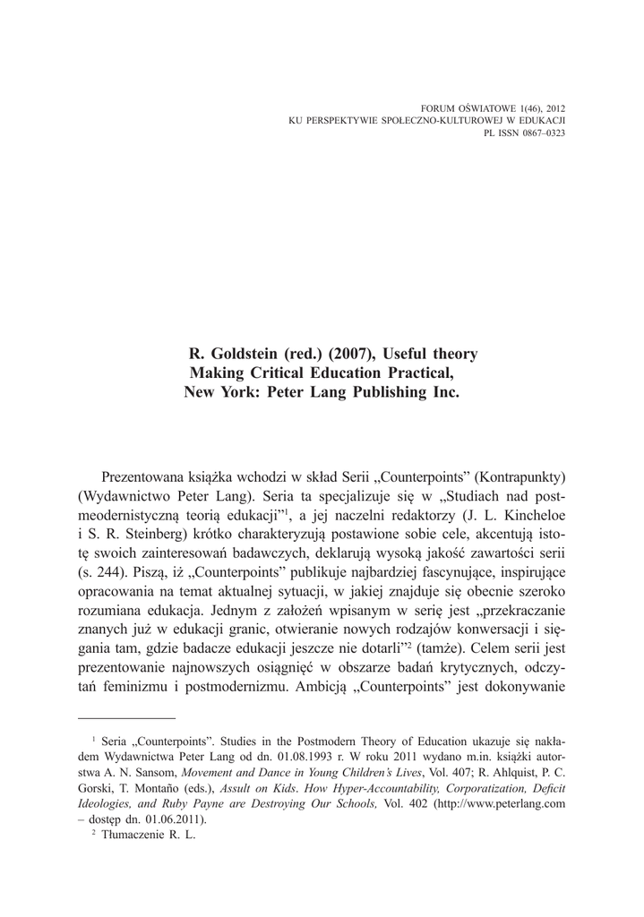 R. Goldstein (red.) (2007), Useful theory Making Critical