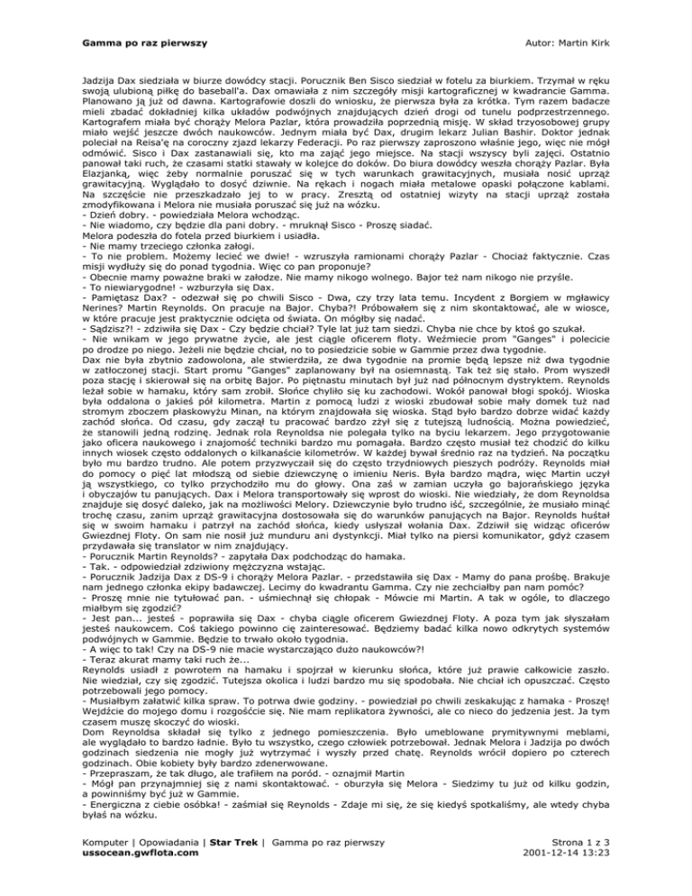Opowiadania | Star Trek | Gamma po raz pierwszy Strona 1 z 3