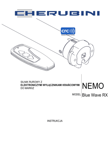 SILNIK RUROWY Z ELEKTRONICZYMI WYŁĄCZNIKAMI KRAŃCOWYMI DO MARKIZ MODEL INSTRUKCJA NEMO Blue Wave RX POŁĄCZENIA ELEKTRYCZNE • Aby zapobiec niebezpiecznym awariom i nieprawidłowemu działaniu naleŜy odpowiednio dobrać typ i parametry włącznika do parametrów elektrycznych silnika. • NaleŜy zastosować włącznik dwupozycyjny o odległości pomiędzy stykami co najmniej 3 mm. • Instalując markizę na zewnątrz pomieszczenia zabezpiecz przewód zasilający silnik dodatkową osłoną odporną na promieniowanie słoneczne. * Instalowanie przełącznika sterowania krok-po-kroku (łącznik zwierny) jest opcjonalne. Przewód biały moŜna łączyć, poprzez łącznik sterowania krok-po-kroku, z przewodem brązowym lub jasnoniebieskim. Łącznik umoŜliwia sterowanie markizą krok-po-kroku, tzn. kolejne naciśnięcia łącznika powodują: zamykanie, zatrzymanie, otwieranie, zatrzymanie, zamykanie, zatrzymanie, otwieranie... Klasa ochrony obudowy silnika: IP44. Oznacza to, Ŝe jest zabezpieczony (wg. normy IP) przed przenikaniem do wnętrza obudowy zanieczyszczeń stałych i kropli wody padających pod dowolnym kątem. Nieprawidłowe poprowadzenie przewodu moŜe powodować stałe naraŜenie obudowy silnika na kontakt z wodą. Dlatego, przewód zasilający silnik naleŜy ułoŜyć w taki sposób, aby krople deszczu spływały poniŜej uszczelki silnika (jak na rysunku). 2 PILOTY ZDALNEGO STEROWANIA Maximo Plus (5 kanałów) Ref. A530019 Maximo (jeden kanał) Ref. A53001B Zielony LED = aktywna reakcja na czujnik wiatru i słońca Czerwony LED = aktywna reakcja na czujnik wiatru Maximo Lux (jeden kanał, do czujnika WindTec Lux) Ref. A530029 WYJAŚNIENIE SYMBOLI 3 SEKWENCJE POLECEŃ Sekwencje poleceń składają się przewaŜnie z trzech kroków, na zakończenie których silnik potwierdza przyjęcie polecenia poprzez wykonanie obrotu w przeciwną stronę niŜ obroty poprzednie. W tym paragrafie pokazano jak rozpoznać potwierdzenie przyjęcia polecenia. Przyciski muszą być naciskane kolejno, w czasie krótszym niŜ cztery sekundy pomiędzy kolejnymi krokami. Jeśli przerwa pomiędzy kolejnymi krokami jest większa niŜ 4 s, to polecenie nie jest akceptowane i sekwencja poleceń musi być powtórzona od początku. Przykład sekwencji poleceń: Jeśli sekwencja poleceń została wykonana prawidłowo (pokazano na powyŜszym przykładzie), to wał silnika wraca do pierwotnej pozycji wykonując jeden długi obrót. Długość dwóch krótkich obrotów w tym samym kierunku odpowiada długości jednego długiego obrotu w przeciwnym kierunku. Wał silnika wraca do swojej pierwotnej pozycji równieŜ wówczas gdy sekwencja poleceń nie została wykonana prawidłowo – wówczas wał silnika wykonuje jeden lub dwa krótkie obroty. Przykład nieprawidłowej sekwencji poleceń: 4 1. PRZYPISYWANIE PIERWSZEGO PILOTA ZDALNEGO STEROWANIA Przypisanie pierwszego pilota moŜe być wykonane jeśli silnik jest nowy lub po przeprowadzeniu operacji kasowania pamięci silnika. T1: Pilot zdalnego sterowania przypisywany jako pierwszy. Podczas przypisywania pierwszego pilota zdalnego sterowania naleŜy zasilać tylko jeden silnik! 2. USTAWIANIE POZYCJI WYŁĄCZNIKÓW KRAŃCOWYCH Silnik rurowy Blue Wave RX jest wyposaŜony w system elektronicznych wyłączników krańcowych z enkoderem połoŜenia, który zapewnia precyzję ustawionych pozycji krańcowych i niezawodność działania. Pozycje krańcowe ustawiamy za pomocą pilota zdalnego sterowania. Podczas ustawiania, wał silnika obraca się jeśli przycisk góra lub dół jest naciśnięty oraz zatrzymuje się jeśli puścimy przycisk. Po ustawieniu pozycji krańcowych aby zwinąć lub rozwinąć markizę naleŜy krótko nacisnąć przycisk odpowiednio ”góra” lub ”dół”. 2.1. USTAWIANIE POZYCJI ZAMKNIĘCIA Po przypisaniu pilota zdalnego sterowania naleŜy ustawić najpierw pozycje zamknięcia!! Dla markiz kasetowych – naciskaj przycisk tak długo aŜ silnik zatrzyma się sam w pozycji zamknięcia markizy. Dla markiz bez kasety – naciskaj przycisk tak długo aŜ markiza osiągnie poŜądaną pozycję zamknięcia. Uwagi: - jeśli markiza jest całkowicie zamknięta, to naleŜy markizę otworzyć na około 20 cm. - PoniewaŜ rzeczywisty kierunek obrotów zwijania (i rozwijania) jest identyfikowany przez sterownik silnika po ustawieniu pozycji zwijania, to aby zamknąć markizę podczas ustawiania pozycji zwinięcia naleŜy naciskać: przycisk ”góra” jeśli silnik jest zamocowany po prawej stronie markizy lub przycisk ”dół” jeśli silnik jest zamocowany po lewej stronie markizy. Aby zapisać pozycję zamknięcia, naciśnij przycisk stop na około 2 s aŜ markiza wykona krótki ruch w ”dół”. Tn: Pilot zdalnego sterowania wcześniej przypisany 5 2.2. USTAWIANIE POZYCJI OTWARCIA Po ustawieniu pozycji zamknięcia, otwórz markizę do Ŝądanej pozycji poprzez naciśnięcie przycisku ”dół”. Aby precyzyjnie ustawić pozycję otwarcia moŜna uŜywać przycisków ”góra”/”dół”. Aby zapamiętać ustawioną pozycję otwarcia, przytrzymaj wciśnięty przycisk ”stop” (na około 2 s) aŜ silnik wykona krótki ruch do góry. 3. PRZYPISANIE DODATKOWEGO PILOTA ZDALNEGO STEROWANIA MoŜna przypisać do 15 jednokanałowych pilotów zdalnego sterowania, łącznie z czujnikiem pogodowym słońce/wiatr radiowym. Nie moŜna uŜyć kanału wspólnego w pilocie pięciokanałowym Maximo PLUS jako szóstego kanału. T1: Pilot zdalnego sterowania wcześniej przypisany Tn: Dodatkowy pilot zdalnego sterowania 4. KASOWANIE PILOTA ZDANEGO STEROWANIA Z PAMIĘCI PoniŜsza procedura (na rysunku) kasuje pojedynczy pilot z pamięci. MoŜliwe jest skasowanie pojedynczo wszystkich przypisanych pilotów. Po skasowaniu ostatniego pilota pamięć odbiornika znajduje się w stanie początkowym i moŜliwe jest przypisanie pierwszego nadajnika. Skasowanie ostatniego pilota nie kasuje ustawień pozycji krańcowych. Tn: Pilot zdalnego sterowania wcześnie