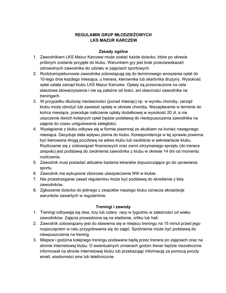 REGULAMIN GRUP MŁODZIEŻOWYCH LKS MAZUR KARCZEW