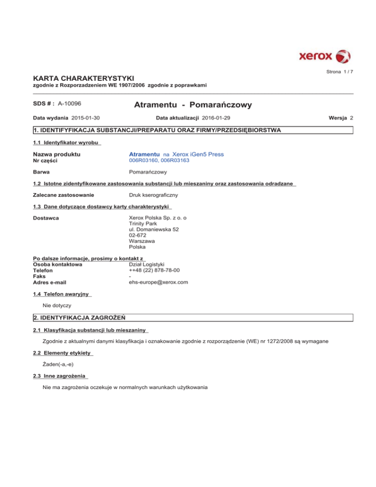 zgodnie z Rozporzadzeniem WE 1907/2006 zgodnie z poprawkami