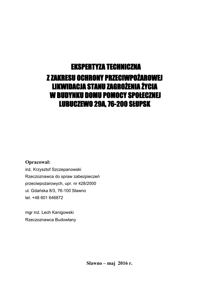 ekspertyza - Dom Pomocy Społecznej w Lubuczewie