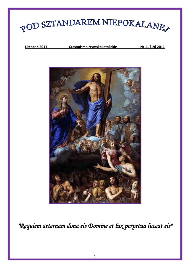 Listopad 2011 Czasopismo rzymskokatolickie Nr 11 (19) 2011 "Requiem aeternam dona eis Domine et lux perpetua luceat eis" 1 "Utrzymywać że wszystkie religie są głosem prawdy, jest największą niedorzecznością. Nie dosyć na tym, wszystkie religie chcą pochodzić z nieba, i w samej istocie ta z nich będzie prawdziwą, która tego dowieść potrafi; inne zaś pozostaną urojeniem lub kłamstwem... Jestże rzeczą podobną do prawdy, aby wszystkie religie, wszystkie wyznania, zarówno były miłymi Bogu? Wszakże nieskończona prawda nie może kochać błędu, a to co jest złem nie może się podobać dobroci bez granic! Ten zatem co twierdzi, że wszystkie religie zarówno są dobre, że za pomocą jakiegokolwiek wyznania człowiek dopełnia obowiązków swoich względem Boga, bluźni przeciwko prawdzie, urąga dobroci Stworzyciela". (Ks. Jakub Balmes, O sposobie osiągnienia prawdy. Filozofia praktyczna. Tłumaczenie z hiszpańskiego. Poznań 1853, ss. 132-133). * * * "Lecz niechaj wszyscy wiedzą, że gdziekolwiek i jakokolwiek człowiek umiera w ciężkim grzechu bez zadośćuczynienia, jeśli może zadość uczynić a nie czyni, czart wyrywa duszę jego z ciała z tak wielką trwogą i przerażeniem, że wiedzieć tego nikt nie może, który sam tego nie zaznał. I traci wszystkie talenty, moc, wiedzę i mądrość... A robactwo zjada jego ciało. I tak w tym krótkim doczesnym życiu gubi duszę swoją i ciało swoje i runie w piekło, gdzie czeka go męka bez końca". (Św. Franciszek z Asyżu, List do wiernych). 2 Spis treści Chrześcijańska filozofia życia. – Oczyszczenie w życiu przyszłym ......................................................... 3 O. Tilmann Pesch SI Co to jest: heroiczny akt miłosierdzia dla dusz w czyśćcu cierpiących ..................................................... 5 "Posłaniec Serca Jezusowego" Bóg objawia świętej Brygidzie tajemnice czyśćca .................................................................................... 6 Opieka dusz czyśćcowych .......................................................................................................................... 7 "Róża Duchowna" Chrześcijańska filozofia życia. – Trzy klasy ludzi ..................................................................................... 8 O. Tilmann Pesch SI O Komunii świętej ................................................................................................................................... 10 Św. Teresa od Jezusa O skromności ............................................................................................................................................ 13 Bp Jan Piotr Camus Nie zabijaj! ............................................................................................................................................... 14 O. M. A. Bellouard OP Różaniec psałterzem Maryi ...................................................................................................................... 22 "Róża Duchowna" Pobudki do unikania grzechu śmiertelnego. Czwarta droga do grzechu śmiertelnego. Próżnowanie ..... 23 O. Mikołaj Łęczycki SI Wykład nauki chrześcijańskiej. – Dziesięcioro Bożego Przykazania. – Przykazanie Pierwsze .............. 24 Św. Robert kard. Bellarmin CHRZEŚCIJAŃSKA FILOZOFIA ŻYCIA O. TILMANN PESCH SI Oczyszczenie w życiu przyszłym 1. Wielu umiera nie będąc wrogami Boga; nie zasługują więc na wieczne potępienie. A jednak są jeszcze dłużnikami sprawiedliwości Bożej. Nic zmazanego nie wnijdzie do królestwa niebieskiego. Trudno przypuścić, aby tacy ludzie z małymi winami mieli być na wieki zgubieni. Jest więc dla nich jakieś miejsce oczyszczenia. Gdy się tam wypłacą do ostatniego szelążka, przejdą do radości wiecznej. 3 "Ci, mówi Plato, co niezupełnie są źli, lecz też niezupełnie niewinni, będą posłani do Acherontu. Przyjechawszy na łodziach do błot acherońskich, zostaną tu zatrzymani, by odcierpieć kary stosowne do swoich win i dopiero kiedy się z nich oczyszczą, otrzymają nagrodę za swoje dobre uczynki" (1). Że takie oczyszczenie w życiu pozagrobowym istnieje, jest to wyraźną nauką chrześcijańskiego Kościoła. Surowa to, ale i pocieszająca nauka. Byłoby rzeczą straszną do pomyślenia, że w życiu przyszłym istnieje tylko niebo i piekło. 2. W czyśćcu, tym miejscu oczyszczenia, muszą być odpokutowane zaległe kary. Jest różnica pomiędzy winą i karą. Winę i wieczną karę odpuszcza nam Bóg przy usprawiedliwieniu. Nie jest jednak rzeczą konieczną, ażeby z odpuszczeniem winy miało być połączone odpuszczenie wszelkiej kary. Przeciwnie, odpowiada to Boskiej mądrości i sprawiedliwości i całemu przez Boga ustanowionemu porządkowi zbawienia, aby grzesznik był pociągnięty do odpokutowania kar doczesnych. Kary te dotykają człowieka często, lecz nie zawsze w tym życiu. Co więc w tym życiu nie zostało odpokutowane, musi być odpokutowane w życiu przyszłym. 3. Nie każdy grzech jest odwróceniem się zupełnym od Boga; są bowiem grzechy powszednie, które nie oddzielają od Boga. Lecz i w powszednim grzechu tkwi również dobrowolny nieład i ten należy odpokutować. Za każde nieużyteczne słowo pociągnie nas Bóg do odpowiedzialności (2). Kto się dopuszcza grzechu powszedniego, każe Bogu poniekąd czekać na siebie; Bóg również każe mu poczekać na oglądanie oblicza Swego. Ta zwłoka wywołuje w duszy wielką boleść i tęsknotę ogromną, bo teraz nieskończenie lepiej poznaje, czym jest Bóg. Oprócz kary rozłąki czasowej są jeszcze w czyśćcu kary pozytywne, stosowne do ilości i ciężkości grzechów, które dusza ma odpokutować. Uzasadniony przeto jest pogląd, że cierpienia te długo trwają i są straszne. Nie mają w sobie nic, co by zasługiwało na nagrodę, są zwykłym odcierpieniem. Bóg w miłosierdziu swoim nieskończony, dał ludziom żyjącym na zi