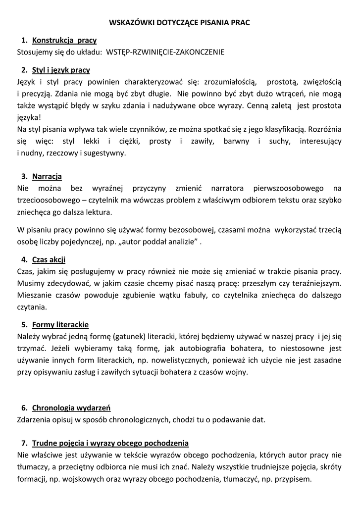 WSKAZÓWKI DOTYCZĄCE PISANIA PRAC 1. Konstrukcja pracy