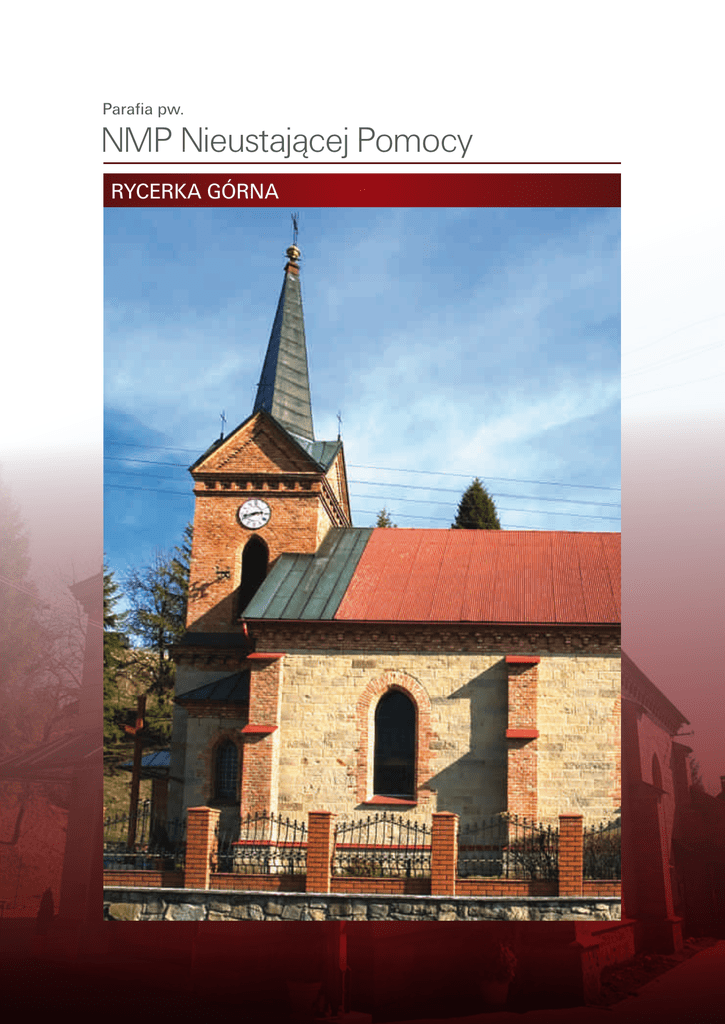 Parafia pw. NMP Nieustającej Pomocy RYCERKA GÓ RNA Tuż przy granicy ze Słowacją leży Rycerka Górna. Wieś do początków XX w. należała do parafii w Rajczy. W 1908 r., na miejscu drewnianej kaplicy, która przetrwała do pocz. XX w., służącej do tej pory mieszkańcom, rozpoczęto budowę kościoła, trwała ona dwa lata. 18 listopada 1911 roku kościółpoświęcono. Do 1 stycznia 1950 r., kiedy to erygowano parafię, kościółbyłfilią parafii w Rajczy, skąd przyjeżdżali tamtejsi kapłani, by odprawiać nabożeństwa i sprawować sakramenty. W tymże roku kardynał Adam Stefan Sapieha mianował kościół w Rycerce Górnej parafialnym. 53 54 Parafia pw. NMP Nieustającej Pomocy RYCERKA KOLONIA kaplica pw. św. Józefa Kaplica w Kolonii jest najmłodszą świątynią w Rycerce Górnej. Zbudowana staraniem mieszkańców przysiółka w 1992 r. została poświęcona w 1994r. przez ks. bpa Tadeusza Rakoczego. 56 Parafia pw. Niepokalanego Serca NMP SOBLÓ WKA Miejscowość Soblówka do XX wieku nosiła nazwę Cicha. Osadnicy wołoscy upodobali sobie to miejsce, ponieważ od XV wieku przebiegałtędy szlak handlowy na Orawę. Pierwotnie mieszkańcy Soblówki należeli do parafii w Ujsołach, do której musieli pokonywać dystans nawet do 8 km. Później modlili się w kaplicy wybudowanej w latach 1948-1952, znajdującej się dziś na Szlaku Architektury Drewnianej Województwa Śląskiego. Pierwsze działania związane z inicjatywą budowy świątyni podjęto w 1948 r., kiedy to pojawił się pomysłutworzenia komitetu budowy, zebrania funduszy i wykupienia odpowiedniej parceli. Budowlę zaprojektowałks. Józef Pułka – ówczesny proboszcz parafii w Ujsołach. Kościółnosi wezwanie Niepokalanego Serca Najświętszej Marii Panny, obok niego wybudowana została wolno stojąca dzwonnica. Świątynię wybudowano z bali drewnianych. Dach pokryto najpierw gontem, a następnie blachą. Poświęcenie kościoła nastąpiło 8 listopada 1952 r. dokonałgo 59 ks. Józef Piotrowski – proboszcz w Ujsołach. Aż do 1984 r., kiedy w Sobiówce utworzono ośrodek duszpasterski, mieszkańcy wsi należeli do parafii św. Józefa w Ujsołach, skąd przyjeżdżali regularnie kapłani, by odprawiać Msze św. i nabożeństwa. Samodzielną parafię erygowano 15 sierpnia 1990 r. dekretem ks. kardynała Franciszka Macharskiego, metropolity krakowskiego. W roku 1987 dobudowano zakrystię i powiększono chór. Administratorem kościoła, a później proboszczem zostałks. Jan Stanisław Króżel. W 1996 r. na placu przed wejściem głównym do kościoła wybudowano osobną wieżę dzwonniczą krytą blachą. Zawisły w niej trzy dzwony o łącznej wadze 810 kg. Drewniana świątynia oparta jest na planie prostokąta z wielobocznym prezbiterium. Z zewnątrz ściany obite są gontem. W ołtarzu głównym znajduje się obraz Niepokalanego Serca Najświętszej Maryi Panny, patronki tej świątyni. Obok ołtarza umieszczono się płaskorzeźby przedstawiające Zwiastowanie i Wniebowzięcie. Na głównej ścianie świątyni znajdują się obrazy Jezusa Miłosiernego i Matki Boskiej Częstochowskiej. W kościele umieszczono pamiątkową tablicę poświęconą bł. Janowi Pawłowi II, który 18 września 1972r. odbył wycieczkę na Rycerzową. Znajduje się tu również płaskorzeźba przedstawiająca papieża, bł.Jana Pawła II. 60 Parafia pw. Najśw. Serca Pana Jezusa SÓ L Sól to miejscowość, której początki sięgają XVI wieku, kiedy to na tereny te przybyli osadnicy wołoscy. Wieś nazwę wzięła od źródełsolankowych, z których pozyskiwano sól od 1808 roku. W latach 1920 -1930 poszukiwano w okolicach Soli ropy naftowej, a podczas wierceń dokonywanych w latach 1947-1950 na głębokości około 1300 m nawiercono cieplicę chlorkowo-sodową (39° C). Idea budowy kościoła dojrzewała w mieszkańcach Soli przez kilkanaście lat. Najpierw wybudowano szałas tzw. „Matuchny Solańskiej”. Znajduje się on obecnie za kościołem parafialnym. Kościół parafialny w Soli pod wezwaniem Najświętszego Serca Pana Jezusa zaczęto budować 3 maja 1980 r. Wtedy właśnie miały miejsce pierwsze prace związane z kopaniem fundamentów. Kamień węgielny pod budowę kościoła poświęciłpapież Jan PawełII w Rzymie. Budowa trwała 3 lata, a nad jej prawidłowym przebiegiem czuwał ks. Władysław Rypień. Jesienią 1984 roku 33-metrowa wieża kościoła wzbogaciła się o mierzący 3,5 m krzyż, który w opinii mieszkańców obejmuje swymi ramionami całą wieś, dając im poczucie bezpieczeństwa i opieki Bożej. Kościółzostałpoświęcony 4 listopada 1989 r. Wnętrze zdobi interesujący ołtarz główny z drewnianymi rzeźbami postaci – bohaterów Ewangelii. Kościół jest stale upiększany i doposażony. W 2001 roku zamatowano na wieży zegar oraz trzy dzwony, a 2011 roku otwarto Szlak Papiesko-Loretański, zamontowano organy piszczałkowe, w podziemiach zorganizowano salę audiowizualną oraz zbudowano dom przedpogrzebowy. 63 64 Parafia pw. św. Józefa Robotnika UJSOŁY Ujsoły – znana miejscowość turystyczna – długo pozostawała jako parafia w obrębie parafii w Rajczy. Powstała już w 1628 r., a jako samodzielna parafia pw. św. Józefa Robotnika została erygowana w 1913 r. Budowę kościoła rozpoczęto w 1923 r., ukończono natomiast dopiero w 1975 r., wg projektu prof. Wacława Krzyżanowskiego z Krakowa, a poświęcenia kamienia węgielnego dokonał kard. Adam Sapieha. Konsekracji świątyni przewodniczył 30 czerwca 1963 r. ks bp Julian Groblicki, sufragan archidiecezji krakowskiej. 67 68 Parafia pw. św. Józefa Robotnika GLINKA kaplica pw. św. brata Alberta Chmielowskiego W styczniu 1990 roku powstała myśl wybudowania kaplicy w Glince. Trudnością było uzyskanie parceli pod budowę świątyni. Ks. bp Jan Pietraszko razem z ówczesnym ks. Proboszczem Józefem Piotrowskim byli kilka razy w Glince szukać odpowiedniego miejsca, ale bezskutecznie. Niespodziewanie zg