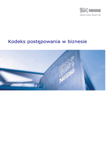 Kodeks postępowania w biznesie Wstęp Od początku swego istnienia firma Nestlé prowadzi interesy kierując się zasadami prawości, uczciwości, sprawiedliwości i pełnego poszanowania wszelkich obowiązujących praw. Pracownicy Nestlé zawsze i na całym świecie dowodzili swej wierności tym zasadom w codziennym działaniu i wypracowana dzięki temu reputacja Nestlé jest dziś jednym z najcenniejszych zasobów naszej Firmy. W przypadku wątpliwości, co do właściwego postępowania w danej sytuacji, pracownicy winni są szukać porady. Każdy pracownik jest odpowiedzialny za „postępowanie we właściwy sposób” i odpowiedzialności tej nie może delegować na kogoś innego. „Zasady prowadzenia działalności gospodarczej przez Nestlé” są dokumentem, który określa wartości i zasady przyjęte przez Nestlé na całym świecie. Prezentowany obecnie „Kodeks postępowania w działalności gospodarczej” ma za zadanie konkretyzować i ułatwiać przestrzeganie „Zasad prowadzenia działalności gospodarczej” poprzez wyłożenie pewnego minimum bezwzględnie obowiązujących standardów zachowania w najważniejszych obszarach działania. — unikać wszelkich działań mogących zaszkodzić lub wystawić na ryzyko firmę Nestlé lub jej reputację — postępować uczciwie i zgodnie z prawem — przedkładać interes Firmy ponad interes własny lub jakikolwiek inny Pracownikom winny zawsze przyświecać następujące podstawowe zasady: W niniejszym dokumencie mianem „pracownika” określa się pracowników, współpracowników, kadrę kierowniczą i dyrektorów Nestlé S.A. oraz spółek zależnych. Kodeks nie jest w stanie uwzględnić wszystkich teoretycznie możliwych sytuacji. Jest pomyślany raczej jako punkt odniesienia, względem, którego można ocenić każde działanie. Kodeks postępowania w biznesie 1 DZIAŁ 1 Przestrzeganie praw, zasad i przepisów Zawsze przestrzegamy prawa Nestlé i pracowników Firmy obowiązuje prawo. Nigdy nie wolno odstępować od przestrzegania któregokolwiek z obowiązujących praw i przepisów. Pracownicy są dodatkowo zobowiązani stosować się do wewnętrznych zasad i zarządzeń odnoszących się do danych sytuacji. Te wewnętrzne uregulowania dotyczą wyłącznie naszej Firmy i mogą wykraczać poza istniejące nakazy prawne. DZIAŁ 2 Konflikt interesów Postępujemy zawsze zgodnie z najlepiej pojętym interesem Nestlé Konflikt interesów ma miejsce, gdy osobiste interesy pracownika lub interesy stron trzecich stoją w sprzeczności z interesami Nestlé. W takich sytuacjach pracownikowi może być trudno postępować w pełni zgodnie z najlepiej pojmowanym interesem Nestlé. Pracownicy winni unikać konfliktu interesów na ile to tylko możliwe. W przypadku, jeśli konflikt interesów jednak wystąpi, lub gdy pracownik znajdzie się w sytuacji, w której taki konflikt może się pojawić, pracownik winien poinformować o tym swojego przełożonego i/lub dział zasobów ludzkich lub dział prawny w celu rozwiązania zaistniałej sytuacji w sposób sprawiedliwy i przejrzysty. Kodeks postępowania w biznesie 2 DZIAŁ 3 Stanowiska kierownicze i inne funkcje poza Firmą Jesteśmy dumni z reputacji Nestlé i kierujemy się najlepiej pojętym interesem Nestlé również w naszych działaniach poza Firmą Pracownikom nie wolno podejmować poza Nestlé żadnej działalności mogącej negatywnie wpływać na wykonywanie ich obowiązków wobec Nestlé, mogących zagrozić reputacji Nestlé lub w jakikolwiek inny sposób kolidować z interesami Nestlé. W przypadku, jeśli pracownik nie jest pewny, czy jakaś działalność jest dopuszczalna, winien skonsultować się w tej sprawie z działem zasobów ludzkich lub działem prawnym. Objęcie następujących stanowisk lub funkcji wymaga uprzedniej zgody członka Zarządu Firmy Nestlé S.A.: — członek zarządu — kierownik — pracownik — partner — konsultant DZIAŁ 4 Zgoda nie jest udzielana w przypadku stanowisk lub funkcji, które mogą doprowadzić do konfliktu z interesami Nestlé lub odbić się niekorzystnie na wykonywaniu obowiązków przez pracownika. Członkostwo w radach spółek giełdowych wymaga uprzedniej zgody Dyrektora Generalnego, zaś w przypadku członków zarządu, zgody Prezesa Rady Nadzorczej Nestlé S.A. Za wyjątkiem przypadków polecenia objęcia danego stanowiska bądź funkcji wydanego przez Firmę, pracownicy winni podejmować działania i obejmować funkcje poza Firmą na własne ryzyko i koszt, wyłącznie w swoim wolnym czasie. Członkowie rodzin i krewni Nasze decyzje o zatrudnieniu i rozwoju pracowników podejmowane są w sposób rzetelny i obiektywny Członkowie najbliższej rodziny i partnerzy życiowi pracowników mogą zostać zatrudnieni w charakterze pracowników lub konsultantów jedynie, jeśli legitymują się odpowiednimi kwalifikacjami, osiągnięciami, umiejętnościami i doświadczeniem oraz pod warunkiem, że między pracownikami i ich najbliższymi członkami rodziny lub partnerami życiowymi nie wystąpią bezpośrednie lub pośrednie podległości służbowe. Dzieci pracowników Nestlé mogą uzyskać pierwszeństwo w dostępie do stażów, okresów szkolenia, zatrudnienia w okresie wakacyjnym i innych tego rodzaju form zatrudnienia czasowego pod warunkiem, że pod względem kwalifikacji nie ustępują innym kandydatom. Powyższe zasady uczciwego zatrudnienia rozciągają się na wszelkie aspekty zatrudnienia, w tym na poziom wynagrodzenia, awanse i przeniesienia, również w sytuacjach, kiedy związki rodzinne czy partnerskie, o których tu mowa, pojawiają się już po zatrudnieniu się pracownika w Firmie. Kodeks postępowania w biznesie 3 DZIAŁ 5 Nowe możliwości działania w biznesie Naszym zadaniem jest dbać o rozwój gospodarczy Nestlé Pracownikom nie wolno konkurować z Nestlé. Nie wolno im także czerpać osobistych korzyści z możliwości biznesowych odkrytych w ramach swojej pracy, o ile Firma w sposób jednoz