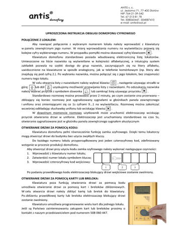 Uproszczona instrukcja obsługi domofonu cyfrowego