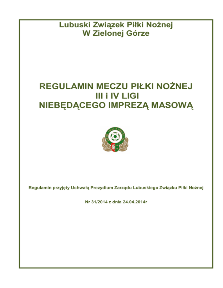 Regulamin Meczu Piłki Nożnej III i IV ligi niebędącego
