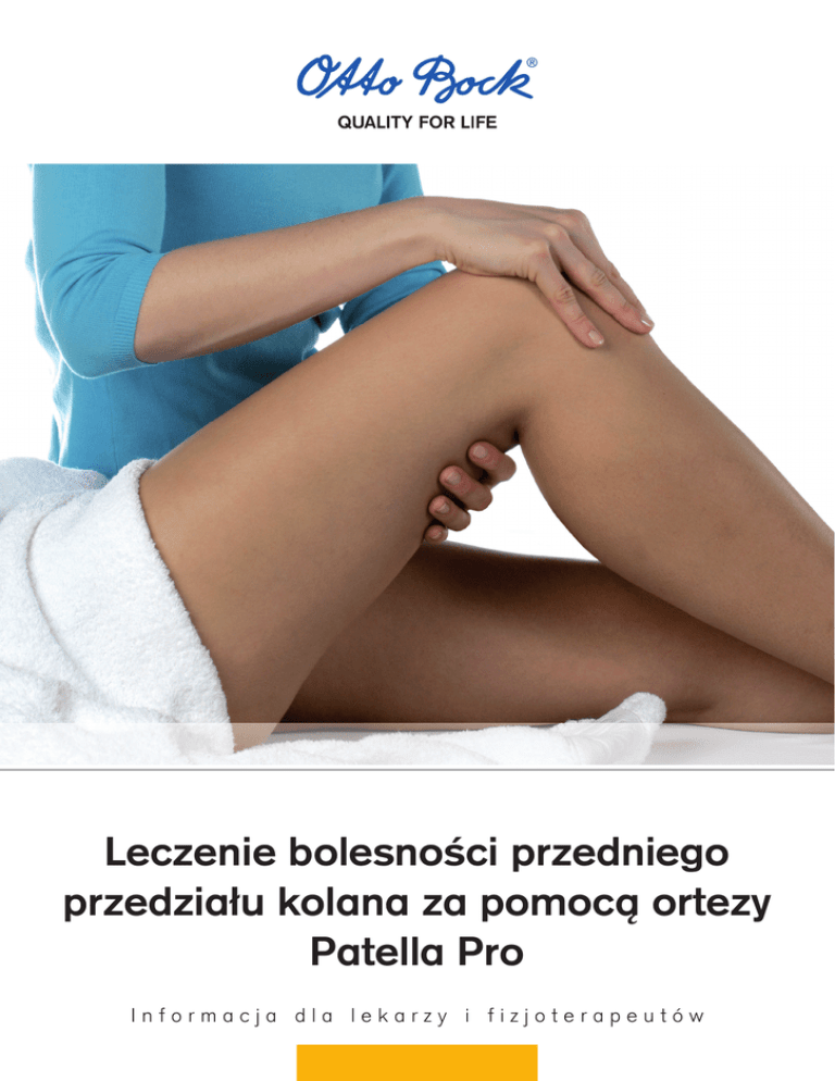 Leczenie bolesności przedniego przedziału kolana za pomocą ortezy Patella Pro Informacja dla lekarzy i fizjoterapeutów Patella Pro Orteza z dynamiczną recentralizacją rzepki Patella Pro Przy 10 – 30° kącie zgięcia stawu kolanowego, gdy rzepka jest luźna i ma ograniczony kontakt z bloczkiem kości udowej, ryzyko jej zwichnięcia jest szczególnie wysokie. Orteza Patella Pro dzięki dynamicznej recentralizacji utrzymuje fizjologiczny ruch rzepki w bloczku kości udowej. Siły działające na rzepkę nie zwiększają się proporcjonalnie do kąta zgięcia stawu kolanowego, tylko odpowiednio dopasowują się do siły działającej bocznie na rzepkę. 2 Otto Bock HealthCare GmbH | 8320 Patella Pro Zespół bólowy przedniego przedziału kolana nowoczesna terapia ortezą Patella Pro Orteza Patella Pro zapewnia medializację rzepki pod każdym kątem zgięcia stawu kolanowego - zawsze prawidłowa siła podparcia rzepki. Orteza A innej firmy Efekt medializacji Orteza B innej firmy Patella Pro Pozycja stojąca Zgięcie Wyprost Efekt medializacji rzepki od zgięcia do wyprostu przy zastosowaniu ortezy Patella Pro przyśrodkowa medial 45 40 kąt [°][°] - zgięcie Angle – Knee kolana flexion 35 30 25 20 15 10 5 0 -1 -2 -4 -5 s[mm] -3 -6 -7 -8 Neutral neutralna Patella Pro Orthosis -9 boczna lateral • Medializacja pod różnym kątem zgięcia bez nadmiernej korekty lub redukcji sił korygujących * Odniesienia: ISPO World Congress / Orthopaedics + Rehabilitation Technology 2010 trade fair - speaker: Brüggemann, Gert Peter, Prof. Dr., Institute for Biomechanics and Orthopaedics, German Sports Academy - Patella kinematics controlled by a new knee orthosis - in-vitro study of the Patella Pro orthosis Cechy i korzyści • Indywidualne dopasowanie; funkcjonalna i dynamiczna recentralizacja utrzymująca rzepkę w odpowiednim miejscu (np. przy wysiłku podczas uprawiania sportu) • Efekt medializacji przy wyproście zabezpiecza rzepkę w pozycji stojącej • Brak ucisku statycznego na rzepkę w celu złagodzenia naprężeń okolicy podrzepkowej • Unikanie nachylenia rzepki, co w fazie dynamicznej odciąża napięcie okolicy dołu podkolanowego • Łatwe zakładanie i zdejmowanie, bez ucisku na tylną • Brak ucisku na ścięgno rzepki, aby uniknąć oddziaływania niepożądanych sił • Elastyczny materiał zapewnia długotrwałe użytkowanie ortezy, zwłaszcza w okresie wzmożonej aktywności pacjenta • Odprowadzanie wilgoci na zewnątrz przez rozciągliwy materiał zwiększa propriocepcję, kompresję i idealne dopasowanie • Smukły i lekki model ortezy zapewnia duży komfort noszenia, nawet pod ubraniem część kolana, oraz maksymalne dopasowanie do pacjenta 8320 Patella Pro | Otto Bock HealthCare GmbH 3 Tło medyczne Rzepka jest największą trzeszczką w układzie kostnym blokowanie kolana, ból podczas takich czynności jak człowieka, zintegrowana w fazie wyprostu ze stawem kucanie, wchodzenie i schodzenie ze schodów, podczas i po kolanowym. aktywności sportowej, ból i sztywność po dłuższym siedzeniu ze zgiętymi stawami kolanowymi. Objawy kliniczne takie jak Często pojawiające się terminy takie jak ból przedniej części odchylenia od prawidłowej osi pionowej kończyn dolnych, kolana, ból wewnętrznej strony rzepki oraz zespół rzepkowo- nadmierna ruchomość lub ograniczenie ruchomości w udowy określają pewną liczbę symptomów, które nie mogą stawie kolanowym oraz zanik mięśnia czworogłowego, mogą być przypisane do określonej jednostki chorobowej. doprowadzić do podobnych dolegliwości bólowych i zwykle są łatwo diagnozowane przez lekarza lub fizjoterapeutę. Przy dolegliwościach przedniej części kolana, często obserwowane są zaniki mięśniowe i zmiany neurologiczne wynikające z nieodpowiedniego ruchu rzepki w bloczku kości udowej. Zmniejszona elastyczność tkanek miękkich wokół stawu kolanowego może spowodować zmiany w naturalnej biomechanice kolana oraz zwiększyć nienaturalną aktywność mięśni. W rezultacie nadmierny ucisk na staw rzepkowoudowy może nieodwracalnie uszkodzić powierzchnie stawowe doprowadzając do bolesnych objawów. Rozwiązaniem jest leczenie zachowawcze, precyzyjnie dostosowane do diagnozowanych objawów. Objawy odczuwalne przez pacjenta to ból okołorzepkowy, 4 Otto Bock HealthCare GmbH | 8320 Patella Pro Syndrom rzepkowo-udowy może wykazywać zarówno zmiany zapalne jak i niezapalną fazę ostrego bólu. Leczenie początkowo skupia się na eliminacji bólu. W zależności od stopnia podrażnienia, należy ograniczyć aktywność fizyczną, włączając do terapii zaopatrzenie ortotyczne. Orteza rzepki Patella Pro z dynamiczną funkcją recentralizacji, zapewnia funkcjonalne pozycjonowanie rzepki podczas codziennej aktywności. Rzepka narażona jest na zwichnięcie szczególnie podczas ruchu w 10-30° zgięciu/wyproście. Orteza Patella Pro dzięki dynamicznej funkcji recentralizacji rzepki, przywraca ją do prawidłowej pozycji na bloczku kości udowej. System pozycjonowania rzepki i dozowania siły bocznej, który działa niezależnie od kąta zgięcia stawu kolanowego, zapobiega nadmiernemu uciskowi bocznemu na rzepkę. Orteza zapobiega podwichnięciu rzepki, które powoduje Silna dynamiczna, zwiększenie ucisku na tkanki miękkie wewnątrz stawu. recentralizacja w zgięciu 10-30° Łagodzi ucisk, często wywołujący stan zapalny, co sprzyja szybkiej regeneracji powierzchni stawowych. Przy prawidłowym zastosowaniu ortezy, skutkującym odciążeniem stawu kolanowego, możliwa staje się fizjologiczna aktywacja mięśnia czworogłowego. Program do ćwiczeń Patella Move wraz z zastosowaniem ortezy Patella Pro systematycznie wspierają leczenie zachowawcze. Dla pacjentów cierpiących na ból przedniego przedziału kolana, orteza Patella Pro jest nowoczesnym rozwiązaniem oferującym funkcjonalną, dynamiczną recentralizację rzepki i może być wykorzystana w trzech fazach leczenia zacho