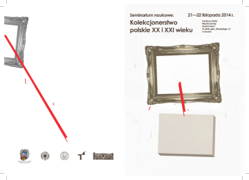 Uniwersytet Mikołaja Kopernika Centrum Sztuki Współczesnej „Znaki Czasu” Seminarium naukowe 18.15—18.45 18.45—19.15 Ewa BOBROWSKA (TERRA Foundation for Americam Art, Paryż), Polska sztuka w Paryżu i jej wsparcie instytucjonalne: zbiory, galerie, stowarzyszenia Aldona TOŁYSZ (Uniwersytet Mikołaja Kopernika, Toruń), Kolekcje nie-świadome: Galeria El w Elblągu, Muzeum w Koszalinie, Muzeum Współczesne we Wrocławiu, Fundacja Bęc Zmiana w Warszawie Kolekcjonerstwo polskie XX i XXI wieku 21—22 listopada 2014 Dzień I: piątek 21 listopada 2014 Dzień II: sobota 22 listopada 2014 11.00—11.30 inauguracja seminarium 11.30—12.00 Agnieszka KLUCZEWSKA-WÓJCIK (Polski Instytut Studiów nad Sztuką Świata, Warszawa), Zbiory, instytucje, rynek – kolekcjonerstwo polskie w XX wieku 12.00—12.30 Jolanta CZERZNIEWSKA (Polskie Towarzystwo do Badań nad Wiekiem Osiemnastym, Warszawa), Rewindykacja: narodziny polskiej kolekcji w XX wieku 12.30—12.45 przerwa 12.45—13.15 Kamila KŁUDKIEWICZ (Uniwersytet Adama Mickiewicza, Poznań), Bardzo długie trwanie. O zainteresowaniach polskich kolekcjonerów sztuką polskiego modernizmu w dwudziestoleciu międzywojennym 13.15—13.45 Agnieszka SALOMON-RADECKA (Muzeum Narodowe w Poznaniu), Poznańscy kolekcjonerzy grafiki w dwudziestoleciu międzywojennym i ich zbiory w świetle dokumentów archiwalnych Muzeum Wielkopolskiego (1919—1939) 13.45—14.15 Janusz MILISZKIEWICZ („Rzeczpospolita”, Warszawa), Propozycja interdyscyplinarnych badań historii prywatnego kolekcjonerstwa i rynku kolekcjonerskiego w Polsce 14.15—15.00 przerwa 15.00—15.30 Paulina KURC-MAJ (Muzeum Sztuki w Łodzi), Rola inicjatyw i kolekcji prywatnych w muzealnictwie polskim lat międzywojennych i bezpośrednio powojennych XX wieku na przykładzie polityki budowania zbiorów w Muzeum Sztuki w Łodzi. 15.30—16.00 Anna SACIUK-GĄSOWSKA (Muzeum Sztuki w Łodzi), Kolekcja sztuki nowoczesnej z okazji pewnego jubileuszu 16.00—16.30 Dorota JURKIEWICZ-ECKERT (Uniwersytet Warszawski), « Precurseurs de l’art abstrait en Pologne ». Konteksty i znaczenie wystawy w Galerii Denise René w historii Muzeum Sztuki w Łodzi 16.30—17.00 Barbara CHOJNACKA (Muzeum Okręgowe im. Leona Wyczółkowskiego, Bydgoszcz), Aktualna sztuka w muzealnej kolekcji. Polska sztuka współczesna w zbiorach Muzeum Okręgowego im. Leona Wyczółkowskiego w Bydgoszczy 17.00—17.15 przerwa 17.15—17.45 Maria SOŁTYSIAK (Narodowy Instytut Muzealnictwa, Warszawa), Katalog kolekcjonerów polskich XIX i XX wieku prof. Andrzeja Ryszkiewicza 17.45—18.15 Małgorzata BAKA-THEIS (Uniwersytet Mikołaja Kopernika, Toruń), Polskie kolekcje sztuki afrykańskiej (XXI w.) 9.00—9.30 Joanna GOJŻEWSKA (Muzeum Piśmiennictwa i Drukarstwa, Grębocin/k. Torunia), Kolekcja sztuki nowoczesnej i marketing w działalności Heleny Rubinstein 9.30—10.00 Magdalena BIAŁONOWSKA (Katolicki Uniwersytet Lubelski), Kolekcjoner polski za granicą – Andrzej Stanisław Ciechanowiecki 10.00—10.30 Anna KROPLEWSKA-GAJEWSKA (Muzeum Okręgowe w Toruniu), Sztuka nowoczesna w Kolekcji Pakoskiej. Od Andrzeja Wróblewskiego do Włodzimierza Pawlaka 10.30—11.00 Milena WOŹNIAK (Instytut Sztuki PAN, Warszawa), Bronisław Krystall (1884—1983) warszawski kolekcjoner początku XX wieku 11.00—11.15 przerwa 11.15—11.45 Wojciech KOWALSKI (Uniwersytet Śląski, Katowice), Dawne i współczesne uwarunkowania prawne kolekcjonerstwa w Polsce 11.45—12.15 Julianna MAKIŁŁA-POLAK (Uniwersytet Mikołaja Kopernika, Toruń), Przypadek Antoniego M. – kolekcjonera prywatnego epoki PRL-u 12.15—12.30 przerwa 12.30—13.00 Jerzy ŻMUDZIŃSKI (Uniwersytet Jagielloński, Kraków), Kolekcja Czartoryskich – najważniejszy polski prywatny zbiór dzieł sztuki czy „Oddział” Muzeum Narodowego? Perypetie w XX wieku i kontrowersje wokół dalszych losów 13.00—13.30 Ryszard KRUK (Warszawa), Czy doświadczenia XX wieku spowodują, że kolekcjonerstwo XXI wieku dopracuje się statusu pomocniczej nauki historii – punkt widzenia kolekcjonera 13.30—14.00 Paweł IGNACZAK (Muzeum Narodowe w Poznaniu), Kolekcjonowanie sztuki współczesnej w poznańskim Muzeum Narodowym w latach 1951—1977 14.00—14.30 podsumowanie (T. F. de ROSSET) 15.00—17.00 Dyskusja panelowa. Moderatorzy: Agnieszka KLUCZEWSKA-WÓJCIK, Tomasz F. de ROSSET Uczestnicy: Wojciech KOWALSKI (Uniwersytet Śląski, Katowice), Andrzej LUBAWY (Toruń), Marek MIELNICZUK (Paryż), Janusz MILISZKIEWICZ („Rzeczpospolita” Warszawa), Krzysztof MUSIAŁ, Marek ROEFLER (Villa la Fleur, Konstancin-Jeziorna)