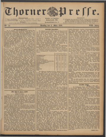 53. Dienstag den 4. März 1890. VIII. Zahrg.