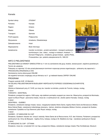 Kanada INFO O PIELGRZYMCE PROGRAM