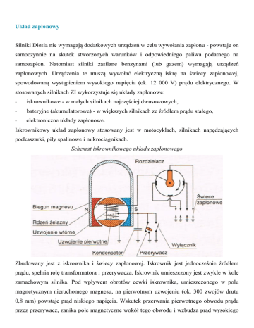 Układ zapłonowy Silniki Diesla nie wymagają dodatkowych