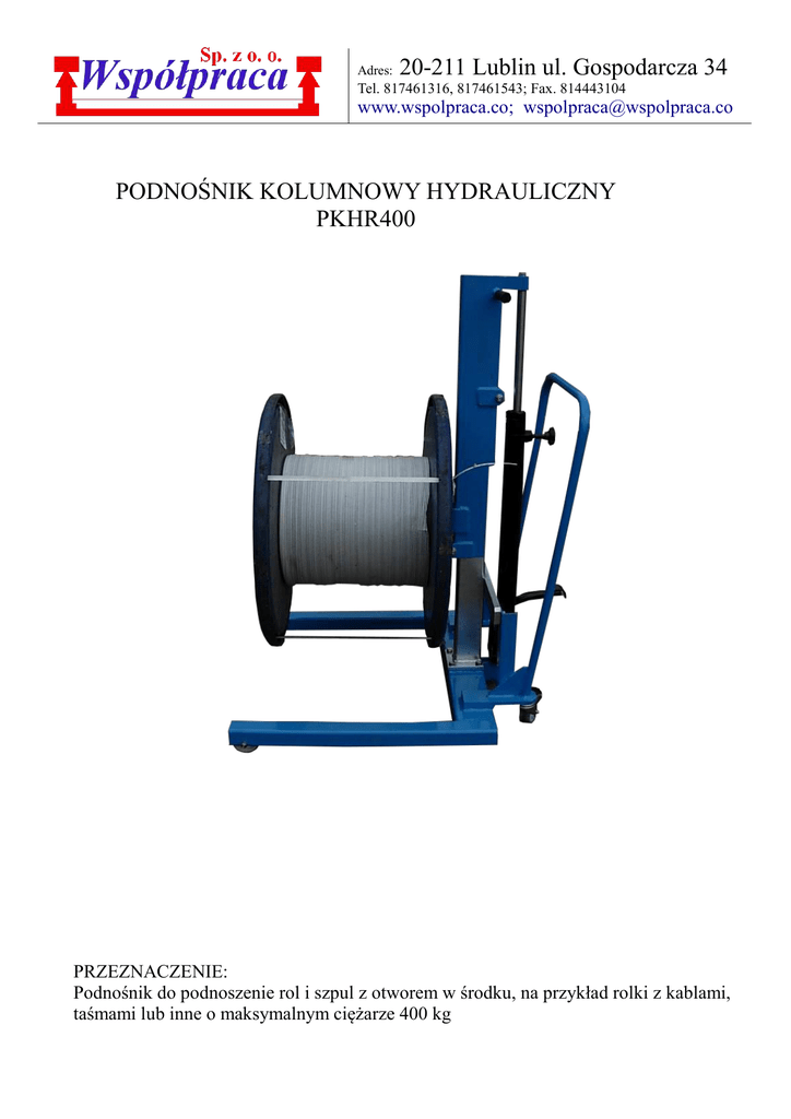 Adres: 20-211 Lublin ul. Gospodarcza 34 PODNOŚNIK