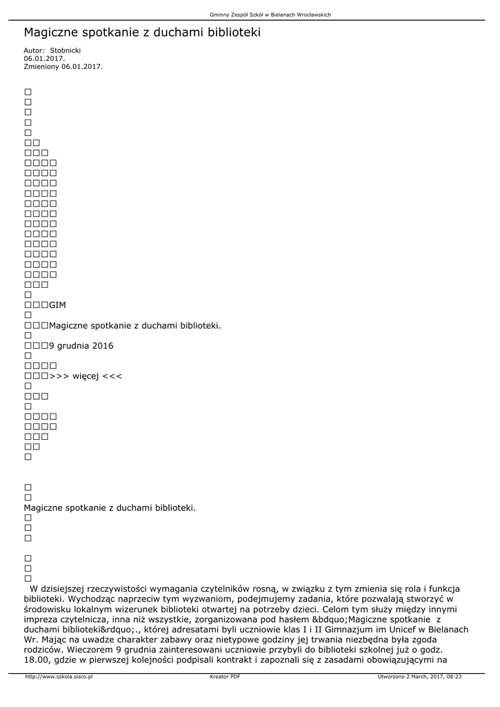 duchami biblioteki”., której adresatami byli uczniowie klas I i II Gimnazjum im Unicef w Bielanach