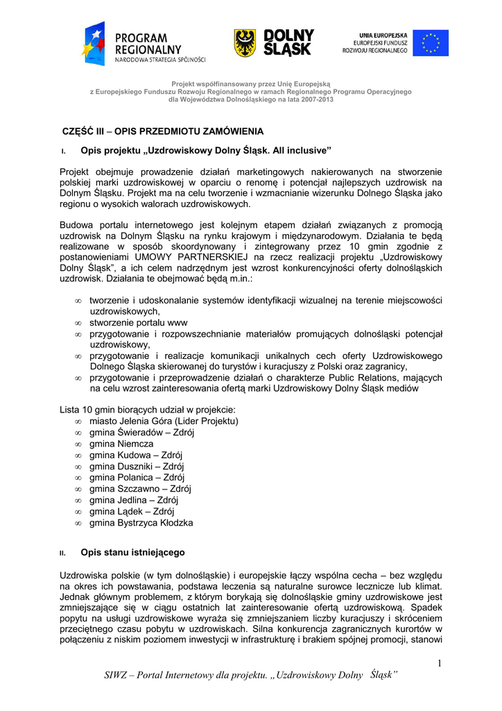 1 SIWZ – Portal Internetowy dla projektu. „Uzdrowiskowy Dolny Śląsk”