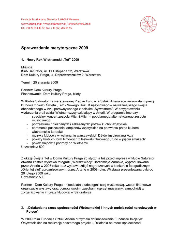 merytoryczne 2009 - Fundacja Sztuki Arteria