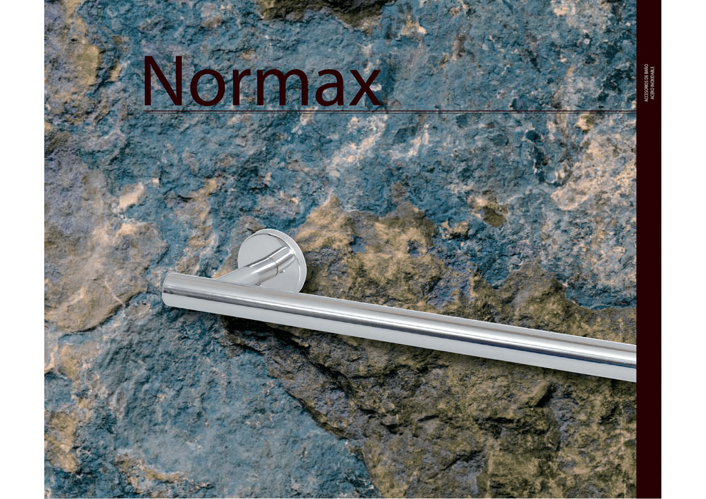 ACCESORIOS DE BAÑO ACERO INOXIDABLE Normax ACCESORIOS FABRICADOS EN ACERO INOXIDABLE AISI 304 20 mm. Ø Normax MADE IN STAINLESS STEEL AISI 304 20 mm. Ø 030100 Percha recta sin base pulida Single bath hook without base polished 030500 Toallero barra 30 cm. pulida Towell rail 30 cm. polished 030102 Percha recta sin base satinada Single bath hook without base satin 030502 Toallero barra 30 cm. satinada Towell rail 30 cm. satin DIM.: 50 mm. x 20 mm. DIM.: 300 mm. x 90 mm. x 50 mm. 030600 Toallero barra 45 cm. pulida Towell rail 45 cm. polished 030602 Toallero barra 45 cm. satinada da Towell rail 45 cm. satin DIM.: 450 mm. x 90 mm. x 50 mm. 020100 Percha recta pulida Single bath hook polished 020102 Percha recta satinada Single bath hook satin DIM.: 50 mm. x 90 mm. 030700 Toallero barra 60 cm. pulida Towell rail 60 cm. polished 030702 Toallero barra 60 cm. satinada Towell rail 60 cm. satin DIM.: 600 mm. x 90 mm. x 50 mm. 031100 Percha recta doble pulida Double bath hook polished 030800 031102 Percha recta doble satinada Double bath hook satin Toallero barra 90 cm. pulida Towell rail 90 cm. polished 030802 Toallero barra 90 cm. satinada Towell rail 90 cm. satin DIM.: 50 mm. x 90 mm. DIM.: 900 mm. x 90 mm. x 50 mm. 40 Normax 020800 Portarrollos con tapa pulido Paper holder with cover polished 020802 Portarrollos con tapa satinada Paper holder with cover satin DIM.: 130 mm. x 140 mm. x 100 mm. 031000 Portarrollos doble sin tapa pulido Double paper holder without cover polished 031002 Portarrollos doble sin tapa satinado Double paper holder without cover satin DIM.: 240 mm. x 90 mm. x 50 mm. 030300 Portarrollos sin tapa pulido Paper holder without cover polished 030302 Portarrollos doble sin tapa satinado Paper holder without cover satin DIM.: 155 mm. x 90 mm. x 50 mm. 030900 Portarrollos reserva pulido Reserve Paper holder polished 030902 Portarrollos reserva satinado Reserve Paper holder satin 021500 Portarrollos elevable pulido Elevable paper holder polished 021502 Portarrollos elevable satinado Elevable paper holder satin DIM.: 120 mm. x 130 mm. x 60 mm. DIM.: 155 mm. x 90 mm. x 50 mm. 021400 Portarrollos doble pulido Double paper holder polished 021402 021 Portarrollos doble satinado Double paper holder satin DIM.: 230 mm. x 140 mm. x 80 mm. DIM 41 ACCESORIOS FABRICADOS EN ACERO INOXIDABLE AISI 304 20 mm. Ø Normax MADE IN STAINLESS STEEL AISI 304 20 mm. Ø 021200 Asa bañera curva pulido Curver bath handle polished 020700 Toallero anilla pulido Towell ring polished 021202 Asa bañera curva satinado Curver bath handle satin 020702 Toallero anilla satinada Towell ring satin DIM.: 200 mm. x 60 mm. x 230 mm. DIM.: 450 mm. x 120 mm. x 50 mm. 021300 Asa bañera curva con jabonera pulido Curver bath handle with soap rack polished 021302 Asa bañera curva con jabonera satinado Curver bath handle with soap rack satin DIM.: 450 mm. x 120 mm. x 50 mm. 021700 Escobillero pared/suelo pulido Ø 90 espesor 2mm. Brush holder wall/floor polished olished Ø 90 gross 2mm. 021702 Escobillero pared/suelo satinado tinado Ø 90 espesor 2mm. Brush holder wall/floor satin tin Ø 90 gross 2mm. DIM.: 90 mm. x 370 mm. x 90 mm. 021600 Repisa cristal pulido Glass rack polished Ø 20 021602 Repisa cristal satinado Glass rack satin DIM.: 530 mm. x 120 mm. x 50 mm. 062000 Escobillero pared/suelo pulido Brush holder wall/floor polished 062002 Escobillero pared/suelo satinado Brush holder wall/floor satin DIM.: 90 mm. x 370 mm. x 90 mm. 42 Normax 021000 Toallero repisa 50 cm. con barra pulido Towell shelf with rail polished Ø 20 021002 Toallero repisa 50 cm. con barra satinado Towell shelf with rail satin DIM.: 500 mm. x 120 mm. x 280 mm. 021100 Toallero repisa 50 cm. pulido Towell shelf polished Ø 20 021102 Toallero repisa 50 cm. satinado Towell shelf satin DIM.: 500 mm. x 60 mm. x 280 mm. 43 ACCESORIOS FABRICADOS EN ACERO INOXIDABLE AISI 304 20 mm. Ø Normax MADE IN STAINLESS STEEL AISI 304 20 mm. Ø 041700 Esponjera chapa inox. AISI 304 espesor 1,5 mm. pulido Rack made stainless steel AISI 304 gross 1,5 mm. polished 101200 Rejilla pequeña varilla pulido Small rack polished 041702 Esponjera chapa inox. AISI 304 espesor 1,5 mm. satinado Rack made stainless steel AISI 304 gross 1,5 mm. satin 101202 Rejilla pequeña varilla satinado Small rack satin DIM.: 120 mm. x 90 mm. DIM.: 150 mm. x 100 mm. x 30 mm. 041800 Esponjera rectangular chapa inox. AISI 304 espesor 1,5 mm. pulido Rectangular rack made stainless steel AISI 304 gross 1,5 mm. polished 041802 Esponjera rectangular chapa inox. AISI 304 espesor 1,5 mm. satinado Rectangular rack made stainless steel AISI 304 gross 1,5 mm. satin 101102 Rejilla mediana varilla pulido Medium rack polished 101102 Rejilla mediana varilla satinado Satin medium rack DIM.: 200 mm. x 100 mm. x 30 mm. DIM.: 200 mm. x 90 mm. 101002 Rejilla grande varilla satinado Satinado big rack 101002 Rejilla grande varilla satinado Satinado big rack DIM.: 300 mm. x 130 mm. x 70 mm. 041600 Esponjera de rincón pulido Corner rack polished 041602 Esponjera de rincón satinado Corner rack satin DIM.: 180 mm. x 260 mm. x 130 mm. 44