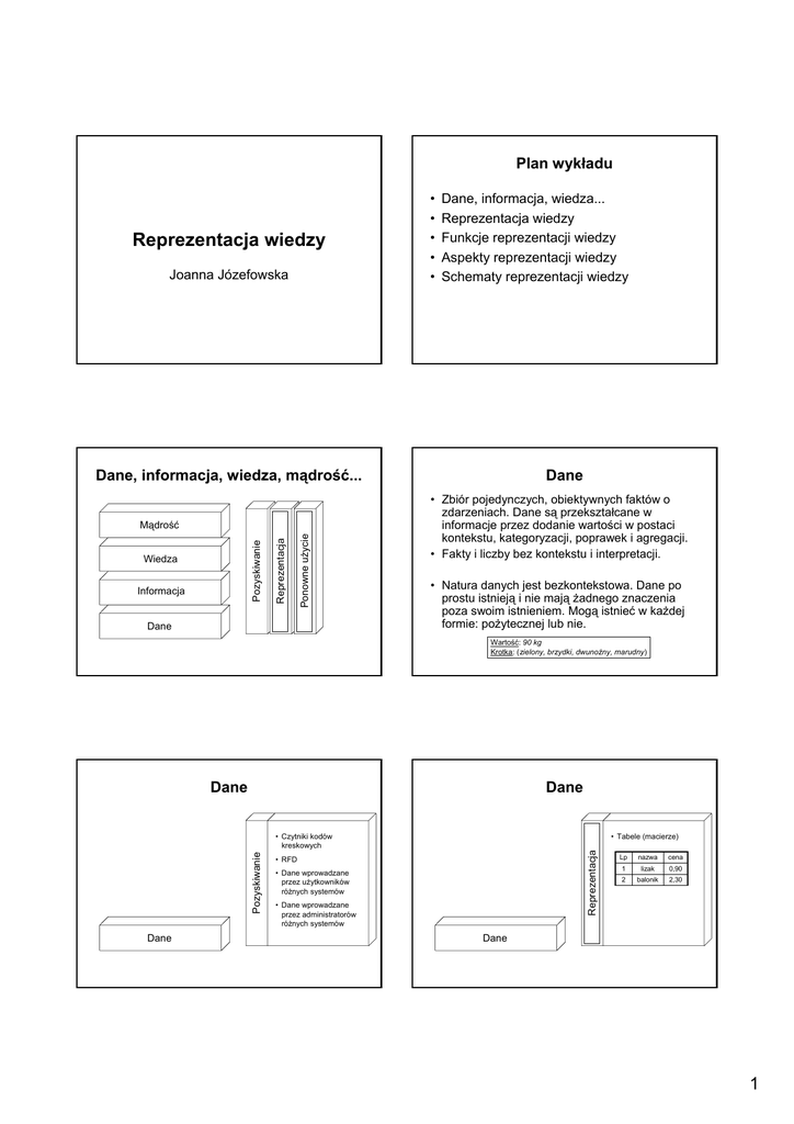 – Kontekst: przeznaczenie danych nadaje im znaczenie (np.