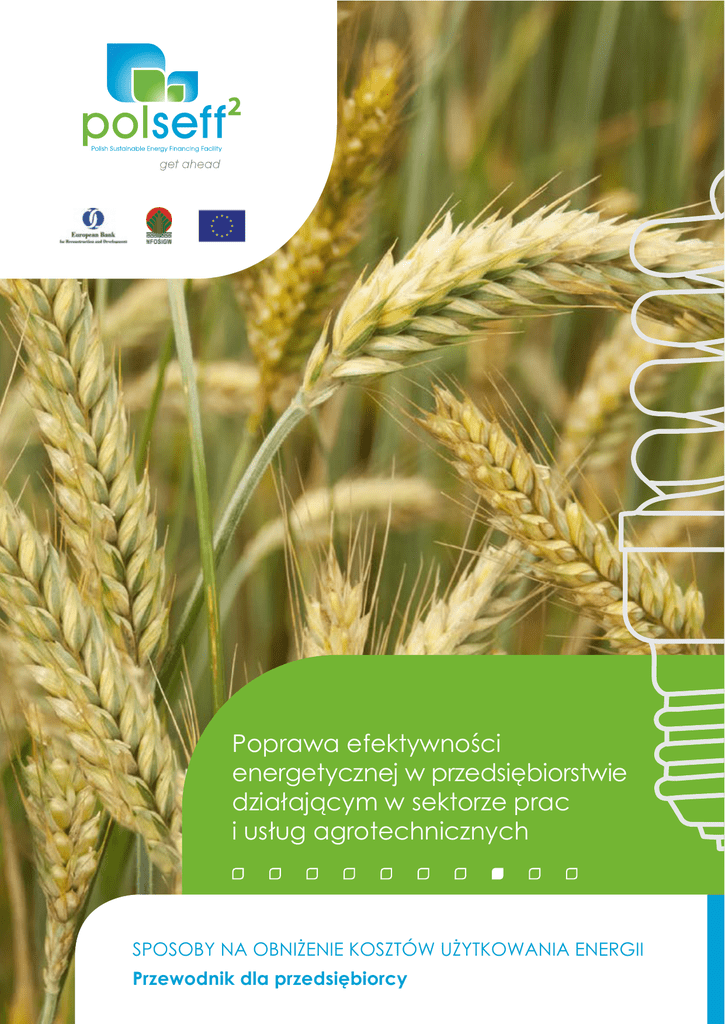 Poprawa efektywności energetycznej w przedsiębiorstwie działającym w sektorze prac i usług agrotechnicznych SPOSOBY NA OBNIŻENIE KOSZTÓW UŻYTKOWANIA ENERGII Przewodnik dla przedsiębiorcy Czy modernizacja energetyczna w firmie wykonującej prace lub usługi agrotechniczne może dostarczyć wymiernych korzyści Rosnące ceny energii sprawiają, że koszty związane z jej wykorzystaniem nabierają coraz większego znaczenia w strukturze kosztów operacyjnych polskich przedsiębiorstw. Na zmiany w podejściu do użytkowania energii w przedsiębiorstwach ma również wpływ coraz bardziej świadoma postawa społecze stwa, która dostrzega negatywne zmiany w środowisku naturalnym. Projekty inwestycyjne zrealizowane przez polskich przedsiębiorców w ramach pierwszej edycji programu PolSEFF w latach 2011 2014 pokazały, że w obszarze prac i usług agrotechnicznych istnieje olbrzymi potencjał dla poprawy efektywności energetycznej. Świadczyć o tym może między innymi fakt, że aż ponad 1000 zrealizowanych Wymiana jakiego typu urządze może dostarczyć największych korzyści w obszarze energooszczędności inwestycji dotyczyło modernizacji parku maszynowego związanego z wykonywaniem prac agrotechnicznych. Analiza tych inwestycji wykazała, że uzyskane w ich rezultacie obniżenie zużycia energii polegające w większości przypadków na obniżeniu zużycia paliwa sięgało nawet 70 rocznie. odatkowe korzyści związane były ze znaczącą redukcją emisji CO2 i innych gazów cieplarnianych oraz spełnianiu przez nowe urządzenia wyższych norm czystości spalin, w rezultacie generując bardzo pozytywny efekt ekologiczny. Celem niniejszej broszury jest przedstawienie przykładowych inwestycji modernizacyjnych w przedsiębiorstwach wykonujących prace oraz świadczących usługi agrotechniczne, które umożliwiły osiągnięcie znaczących oszczędności energii i jednocześnie umożliwiły realizację strategicznych celów związanych z rozwojem firm. Przedstawione informacje zostały opracowane w oparciu o faktycznie zrealizowane projekty inwestycyjne sfinansowane w ramach programu PolSEFF. Największe zużycie energii w przedsiębiorstwie realizującym prace lub usługi agrotechniczne związane jest z napędzaniem pojazdów oraz maszyn i dotyczy zużycia paliw. Największe oszczędności oraz pozytywny efekt ekologiczny uzyskiwany jest przy wymianie starych i wyeksploatowanych maszyn. Innym typem inwestycji, który dostarczyć może bardzo wysokich oszczędności na poziomie kilkuset tysięcy złotych rocznie jest modernizacja suszarni do zbóż. Wymiana ciągnika oraz kombajnu do zbioru zbóż • Rodzaj działalności przedsiębiorstwa: Usługi dla rolnictwa • Informacje dodatkowe: Rolnicza Spółdzielnia Produkcyjna świadcząca usługi dla rolnictwa zainwestowała w wymianę wyeksploatowanego ciągnika na nowy John eere 210R oraz kombajnu na John eer W540 eader 5.5. o głównych celów inwestycji należały: poprawa jakości świadczonych usług agrotechnicznych oraz obniżenie poziomu zużycia paliwa oraz wzrost wydajności. W rezultacie firma uzyskała obniżenie zużycia paliwa o 3300 litrów rocznie i ograniczyła emisję CO2 o ponad 12 ton rocznie. Inwestycja została zrealizowana w oparciu o listę EME. Po zakupie maszyn, firma otrzymała dotację w wysokości 10 wartości otrzymanego finansowania. • Koszt inwestycji: 840 000 zł • Oszczędność energii: 24 3300 litrów paliwa Wymiana ciągnika oraz kombajnu szczędno z ycia paliwa li r w rocznie Wymiana kombajnu do buraków • Rodzaj działalności przedsiębiorstwa: Usługi dla rolnictwa • Informacje dodatkowe: Firma świadcząca usługi agrotechniczne wymieniła stary kombajn do zbioru buraków na nowy firmy Ropa Euro Tiger 8 3. Celem inwestycji było obniżenie kosztów zużycia paliwa oraz zwiększenie wydajności umożliwiające obróbkę większej powierzchni w danym czasie. Inwestycja została sfinansowana w trybie standardowym. zięki inwestycji firma obniżyła zużycie paliwa o 14 000 litrów rocznie i emisję CO2 o 37 ton. Po zakupie maszyny firma otrzymała dotację w wysokości 10 wartości otrzymanego finansowania (200 000 zł). • Koszt inwestycji: 2 000 000 zł • Oszczędność energii: 29 14 000 litrów paliwa Wymiana kombajnu do buraków szczędno z ycia paliwa li r w rocznie Wymiana suszarni do zbóż • Rodzaj działalności przedsiębiorstwa: Magazyn zbożowy • Informacje dodatkowe: Firma zajmująca się sprzedażą pasz i świadczeniem usług w zakresie przechowywania rzepaku i zbóż zdecydowała się na wymianę wyeksploatowanej suszarni do zbóż firmy Agromet zasilanej olejem opałowym na nową firmy Buhler STx -07 2 zasilanej PG. Oprócz tego do napędu wentylatorów wykorzystywana jest energia elektryczna. zięki tej inwestycji zwiększyła się wydajność suszenia na godzinę o około 80 , a firma zredukowała roczne zużycie energii o 8 (147 000 zł) i ograniczyła emisję CO2 o 490 ton rocznie. Po zako czeniu inwestycji firma otrzymała dotację w wysokości 10 wartości kredytu. • Koszt inwestycji: 838 000 zł • Oszczędność energii: 8 147 000 zł Wymiana suszarni szczędno kosz w ener ii z rocznie Finansowanie inwestycji w modernizację urządze i technologii w przedsiębiorstwach wykonujących prace lub usługi agrotechniczne. Inwestycje w wymianę maszyn i instalacji realizowane przez małe i średnie przedsiębiorstwa z sektora usług agrotechnicznych są objęte finansowaniem w ramach programu PolSEFF2. W przypadku tych inwestycji przedsiębiorca może skorzystać z dwóch ścieżek finansowania. W przypadku planowanej inwestycji polegającej na wymianie ciągnika lub kombajnu na nowoczesny i energooszczędny, przedsiębiorca może skorzystać z procedury uproszczonej polegającej na wyborze urządzenia z listy EME. Wyszukiwarka urządze EME dostępna jest na stronie: p www polse or pl sz ka rzadzenia le e W przypadku, gdy danej maszyny nie ma na liście