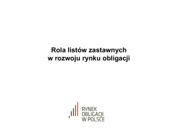 Rola listów zastawnych w rozwoju rynku obligacji Kontekst Banki polskie są jednymi z najbezpieczniejszych kapitałowo w Europie, co przejawia się wysokim współczynnikiem wypłacalności w sektorze (średnio ponad 15% przy wymaganych 8%) Najistotniejsze ryzyko systemowe polskiego sektora bankowego wynika ze strukturalnej luki płynności – długoterminowe kredyty (np. kredyty mieszkaniowe z 25-letnim kontraktowym tenorem zapadalności) finansowane są przez krótkoterminowe depozyty, najczęściej kilkumiesięczne Rocznie polskie banki sprzedają ponad 30 mld kredytów hipotecznych. Ich wartość w sektorze bankowym przekroczyła 340 mld. Obecny model ich finansowania wyczerpuje swoje możliwości, choćby ze względu na normy płynności. Kluczem do zmniejszenia tych ryzyk jest dywersyfikacja źródeł finansowania banków We współpracy z agencjami ratingowymi w porozumieniu z Komisją Nadzoru Finansowego, Ministerstwa: Finansów i Sprawiedliwości wprowadzają zmiany w sposobie funkcjonowania banków hipotecznych, które skutkować powinny rozwojem listów zastawnych w Polsce. Do banków hipotecznych należących do Grup Commerzbanku i Unicredit dołączy wkrótce PKO Bank Hipoteczny, a kolejne banki deklarują powołanie własnych odnóg hipotecznych. 2 Listy zastawne = Covered bonds Senior bonds Asset-Backed Securities Covered Bonds Pfandbriefe Cèdulas Obligations à l’Habitat • Bank • SPV • Bank • Nieokreślone • Środki ze spłat kredytów • Nieokreślone • Ustalona z góry jednorazowa spłata kapitału • Pass-through • Ustalona z góry jednorazowa spłata kapitału • Brak • Zamknięty katalog kredytów nabytych przez SPV • Kredyty udzielone lub nabyte • Dynamiczny charakter zabezpieczenia • Regres do innych aktywów emitenta Emitent Źródło spłaty Harmonogram spłat Zabezpieczenie 3 Model działania banku hipotecznego Inwestorzy obejmują Bank Hipoteczny kredytuje Bank Hipoteczny Aktywa Sektor publiczny Nowe kredyty Portfel kredytów Pasywa Publiczne listy zastawne Zabezpieczenie Kredyty dla sektora publicznego Publiczne listy zastawne Nowe emisje Portfel listów Spłata kredytów Wykup Zabezpieczenie Właścicieli nieruchomości mieszkaniowych i komercyjnych Nowe kredyty Hipoteczne listy zastawne Kredyty hipoteczne Hipoteczne listy zastawne Nowe emisje Portfel listów Portfel kredytów Wykup Spłata kredytów Dług typu senior Inne aktywa Kapitał 4 Listy zastawne finansują ponad EUR 2,5 biliona kredytów w Europie. Poziom rocznej emisji sięga EUR 700 mld 2 278 2 394 2 502 532 611 2 672 2 812 697 707 2 598 2 024 650 464 2007 2008 2009 429 2010 Nowa emisja 2011 2012 2013 Saldo Źródło: 2014 ECBC European Covered Bond Fact Book 5 Listy zastawne nabywane są głównie przez inwestorów z Europy Zachodniej Podział inwestorów według kraju/regionu (2013 r.) 4% 4% 4% 6% 40% Niemcy Wlk.Brytania Skandynawia 8% Francja Pozostałe Beneluks Płwp. Iberyjski 9% Austria Azja 10% 12% Źródło: Bloomberg 6 Listy zastawne nabywane są głównie przez firmy inwestycyjne i banki Podział inwestorów na rynku listów zastawnych (2013 r.) 5% 8% 39% Banki 10% Asset Managers i Fundusze Emerytalne Firmy Ubezpieczeniowe Banki Centralne Pozostali 38% Źródło: Bloomberg 7 Około 25% emisji trafia do inwestorów krajowych Udział inwestorów krajowych na rynku listów zastawnych* 28% 27% 27% 24% 24% 24% 2012 2013 15% 2007 2008 2009 2010 2011 Źródło: Bloomberg: Udział oszacowany na bazie wybranych krajów (AT, CH, DE, DK, ES, FI, FR, GB, IR, IT, NL, NO, PT, SE), obejmujących c.a. 95% emisji rocznej. Dla rynku niemieckiego udział inwestorów krajowych wynosi 67,1% w 2013 r., podczas gdy w pozostałych jurysdykcjach udział ten kształtuje się w przedziale od 1,5% do 30,7% 8 Wiarygodność listów zastawnych na rynkach finansowych oceniana jest najwyżej Moody's S&P Fitch 70% 60% 50% 40% 30% 20% 10% 0% Aaa/AAA Aa/AA A Baa/BBB Ba/BB B or lower Źródło: www. coveredbondnews.com 9 Wiarygodność polskich listów zastawnych może być oceniana na poziomie AA-AAA Maksymalny rating dla listów zastawnych Rating Polski Maksymalny uplift PLN FX PLN FX PLN FX A A- AAA AA- +6 +3 A2 A2 Aa3 Aa3 +2 +2 A A- AA A+ +4 +2 10 Co zawierają założenia reformy listów za stawnych przyjęte przez Radę Ministrów 1 2 3 4 Limity emitenta w OFE • Osobny 5% limit inwestycji w listy zastawne pojedynczego emitenta • Wyłączenie poboru podatku u źródła w zakresie emisji obligacji zabezpieczonych • • • Struktura pass-through po upadłości banku hipotecznego Obowiązkowy bufor płynności Obowiązek 10% nadzabezpieczenia • Limit refinansowania listami zastawnymi kredytów detalicznych na poziomie 80% bankowohipotecznej wartości nieruchomości Podatek u źródła Postępowanie upadłościowe banku hipotecznego Limit refinansowania kredytów detalicznych listami zastawnymi 11 Udział hipotecznych listów zastawnych w finansowaniu kredytów hipotecznych osiągnie 7% 47,7% 43,0% 33,8% 27,0% 24,9% 7% 0,9% 2013 … 2015 2016 2017 2013 2013 2013 2013 2013 Źródło: Opracowanie własne na podstawie danych NBP oraz EMF 12