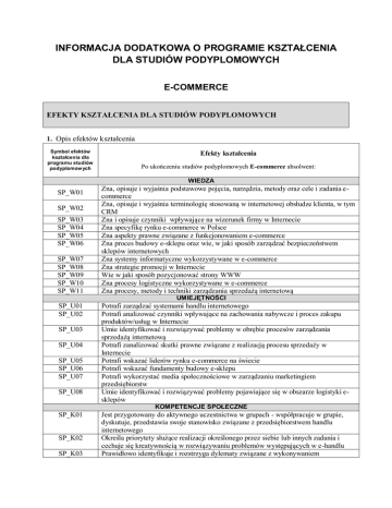 Informacje dodatkowe o programie studiów E-commerce