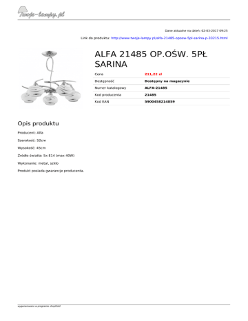 alfa 21485 op.ośw. 5pł sarina - Twoje