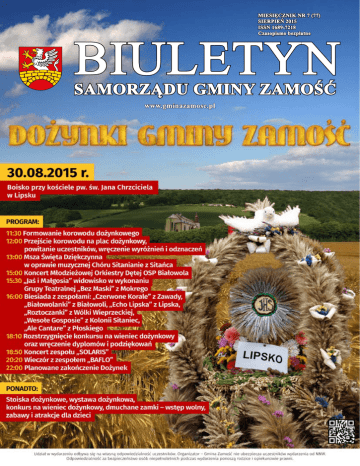 MIESIĘCZNIK NR 7 (77) sierpień 2015 ISSN 1689-7218 Czasopismo bezpłatne BIULETYN SAMORZĄDU GMINY ZAMOŚĆ www.gminazamosc.pl sierpień 2015 2 Fundusz sołecki nowe samorządowe wyzwanie Początek kolejnej samorządowej kadencji Organów Gminy jest dobrym czasem podejmowania nowych wyzwań. Takim właśnie jest rok 2015. Szybko minął czas, w którym myślami powracaliśmy do decyzji Mieszkańców wyrażonych w wyborach samorządowych, jakie miały miejsce 16 listopada 2014 roku. Były jeszcze uroczyste chwile w trakcie pierwszej sesji Rady Gminy VII kadencji. Wspólnie przeżywana ofiara Mszy Świętej, ślubowanie Radnych, wybór Przewodniczącego Rady, ślubowanie Wójta Gminy. Przypomnijmy, że miało to miejsce 1 grudnia 2014 roku w Płoskiem. Później już trudne i odpowiedzialne decyzje. Pierwszym wyzwaniem był oczywiście budżet Gminy 2015 roku. Termin jego przyjęcia mijał z ostatnim dniem stycznia. Już w trakcie prac nad przedłożonym przez Wójta projektem budżetu rozmawiano o kolejnej ważnej decyzji – ewentualnym wydzieleniu w budżecie Gminy 2016 roku funduszu sołeckiego. Czas na ostateczne decyzje Wójt i Rada mieli do końca marca 2015 roku. Po długich debatach – obradach Komisji, rozmowach Radnych i Sołtysów, Rada Gminy na sesji w dniu 30 marca podjęła decyzję o wydzieleniu funduszu. Przyjęto projekt uchwały przedłożony przez Wójta. Za głosowało 13 Radnych, przeciw było 7, jeden głos wstrzymujący się. Czym jest fundusz sołecki? To wydzielone w ramach budżetu Gminy nasze własne środki finansowe, które są podzielone na poszczególne Sołectwa w zależności od liczby Mieszkańców. Decyzje o przeznaczeniu tych pieniędzy podejmują Mieszkańcy na zebraniach wiejskich. Ile funduszu sołeckiego przypada na Sołectwo? Obrazuje to zamieszczona poniżej niniejszego tekstu tabela. Prawna górna granica to 23 726,79 zł. Na co można przeznaczyć środki funduszu sołeckiego? Jedynym kryterium prawnym w tym zakresie jest zbiór zadań własnych Gminy określonych w art. 7 ust. 1 ustawy z dnia 8 marca 1990 roku o samorządzie gminnym. Mogą to być wydatki bieżące oraz inwestycyjne z zakresu zaspokajania zbiorowych potrzeb Mieszkańców. Na co nie można przeznaczać funduszu sołeckiego? W kategorii wspomnianych powyżej zadań własnych Gminy nie mieszczą się między innymi: zadania związane z budową nawierzchni dróg powiatowych i wojewódzkich oraz chodników przy nich, wydatki ponoszone na przedsięwzięcia realizowane w granicach dróg krajowych, konserwacja i budowa urządzeń melioracji szczegółowych (rowów na polach i łąkach). Jaka jest procedura uruchomienia funduszu sołeckiego 2016 roku? Do końca września 2015 roku we wszystkich Sołectwach Gminy Zamość muszą odbyć się zebrania wiejskie zwołane przez Sołtysa. To Mieszkańcy uczestniczący w zebraniu zgłaszać będą propozycje przedsięwzięć do realizacji w ramach środków funduszu sołeckiego, a następnie poprzez głosowanie dokonają wyboru jednego lub kilku. Ograniczeniem oczywiście jest kwota funduszu przeznaczona dla Sołectwa. Protokół z zebrania wiejskiego i uchwałę o wyborze przedsięwzięcia do realizacji Sołtys przedkłada wraz z wnioskiem Wójtowi Gminy – nieprzekraczalny termin do 30 września 2015 roku. Jeśli wybrane przez zebranie wiejskie przedsięwzięcie mieści się w kategorii zadań własnych Gminy następuje jego realizacja. Wójt ma obowiązek ujęcia zadania w projekcie budżetu Gminy 2016 roku, a Rada musi w tym zakresie uchwalić budżet. Technicznie zadanie realizuje gminna Administracja, a odpowiedzialność prawną za wykonanie ponosi Wójt. Środki funduszu sołeckiego muszą być wydatkowane w danym roku, teraz mówimy o 2016. Niewykorzystane środki nie przechodzą na kolejny rok. Co stanie sie, jeśli zebranie zdecyduje o realizacji z funduszu sołeckiego zadania nie należącego do kategorii zadań własnych Gminy? W terminie siedmiu dni od otrzymania takiego wniosku Wójt Gminy ma obowiązek jego odrzucenia. Nie można już wówczas zmienić zakresu proponowanego do realizacji zadania. W efekcie, po całej prawnej procedurze, Sołectwo traci prawo do środków funduszu sołeckiego danego roku. Czy z funduszem sołeckim związane są dodatkowe środki finansowe po stronie dochodów budżetu Gminy? Tak, ale po upływie roku. Obowiązkowa minimalna kwota funduszu wydzielonego z budżetu Gminy 2016 roku to 589 777 zł. Jeśli te pieniądze wydamy na realizację przedsięwzięć finanse i inwestycje wybranych przez Mieszkańców w 2017 roku otrzymamy zwrot z budżetu Państwa 40% kwoty, a więc 235 911 zł. Oczywiście wcześniej będzie kontrola przeznaczenia i wydatkowania środków. Musi to być bezbłędne. Czy fundusz sołecki może być większy? Tak, to zależy od decyzji Organów Gminy. Nie ma ograniczeń kwotowych w tym zakresie. Zwrot z budżetu Państwa liczony jest jednak tylko od kwoty minimalnej. Jedną ze słabości funduszu sołeckiego są niewielkie środki finansowe, o których wydatkowaniu decydują Mieszkańcy. W 2016 roku rozpoczynamy od minimum określonego ustawą. Niewątpliwie celem na najbliższe lata jest zwiększenie tej kwoty. Na początek proponujemy coś zastępczego. W czerwcu, na mój wniosek. Rada Gminy wprowadziła zmiany w procedurze przygotowania projektu budżetu Gminy 2016 roku i kolejnych lat. Na wrześniowych zebraniach wiejskich Mieszkańcy poprzez głosowanie wskazywać też będą najważniejsze Ich zdaniem przedsięwzięcie do realizacji w ramach zasadniczego budżetu Gminy 2016 roku. Procedura podobna jak w przypadku funduszu sołeckiego. Różnica polega na znaczeniu wyboru Mieszkańców. W tym przypadku ostateczne decyzje podejmują Wójt i Rada Gminy. Pozostałe zgłaszane na zebraniu wiejskim wnioski tak jak dotychczas, Rada Sołecka przekaże Wójtowi (termin do 20 października). Fundusz sołecki w polskim samorządowym gospodarowaniu budżetowym występuje od 2010 ro