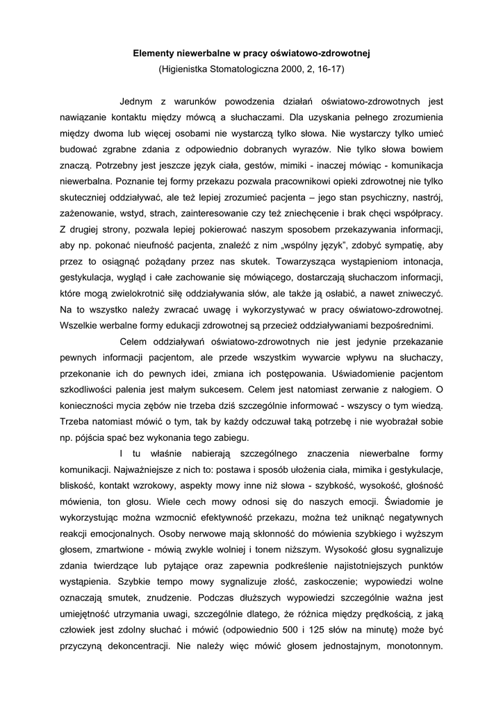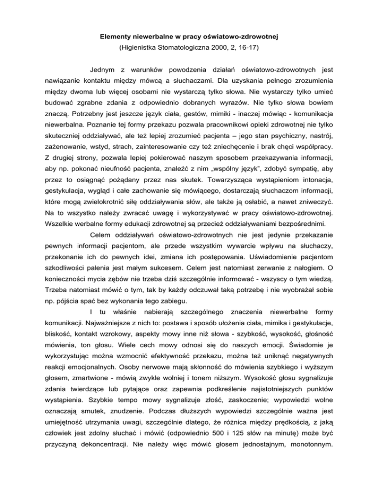Elementy niewerbalne w pracy oœwiatowo