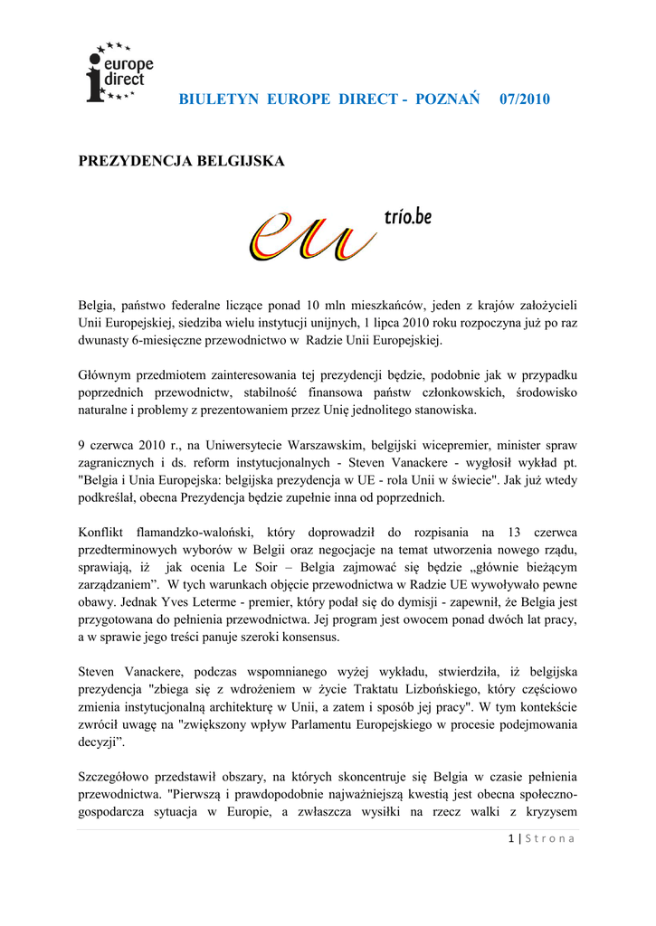 BIULETYN EUROPE DIRECT - POZNAŃ 07/2010 PREZYDENCJA