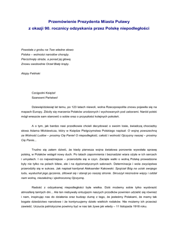 Przemówienie Prezydenta Miasta Puławy z okazji 90