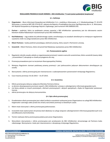 REGULAMIN PROMOCJI EULER HERMES + BIG InfoMonitor - BIG-u