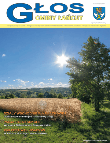 G ŁOS ISSN 1731-9773 GMINY ŁAŃCUT egzemplarz bezpłatny Nr 4(93) sierpień 2016 Albigowa • Cierpisz • Głuchów • Handzlówka • Kosina • Kraczkowa • Rogóżno • Sonina • Wysoka DZIAŁY WSCHODNIE W KRACZKOWEJ Dofinansowanie unijne na budowę drogi PASJA RODZI SUKCES Wywiad z Sebastianem Boguszewskim XVII FESTIWAL KWIATÓW W kolorze złocistych słoneczników Handzlówka, fot. Maciej Kisała 50-lecie pożycia małżeńskiego w Wysokiej fot. Kinga Cyran Obietnica Zuchowa w Kosinie fot. Katarzyna Karczmarz U przedszkolaków w Albigowej fot. archiwum Robotyka w Handzlówce fot. Magdalena Balawender Obietnica Zuchowa w Kosinie fot. Katarzyna Karczmarz Dzień rodziny w Kosinie fot. archiwum URZĄD W numerze m.in.: Szanowni Państwo Mieszkańcy Gminy Łańcut R Pomoc de minimis 4 Nowy oddział w wysockim przedszkolu 5 Zmiany w gospodarowaniu odpadami komunalnymi 6 150 lat KGW na Ziemiach Polskich 11 Wywiad z Sebastianem Boguszewskim 14 XVII Festiwal Kwiatów w Albigowej 16 Akcja krwiodastwa w Kosinie 18 Wspomnienie o Zofii Trojnar 21 Robotyka w Handzlówce - projekt edukacyjny 24 Informacje sportowe 34 G ŁOS GMINY ŁAŃCUT ozpoczęliśmy II półrocze roku budżetowego, co widać w zaawansowaniu inwestycji gminnych. Część z ich jak np. rozbudowa dróg wewnętrznych do piekarni i „Na Błonia” w Kraczkowej, Cierpisz -Maciejówka oraz „Rogóżno-Cesin” zostały zakończone. Trwa przebudowa drogi gminnej – Kosina przez wieś „Poselska”. Od września część uczniów powita nowy rok szkolny w zmodernizowanych obiektach: szkoła w Rogóżnie będzie mieć nowy dach, w Cierpiszu wyremontowana zostanie sala gimnastyczna, w Głuchowie kuchnia, a przedszkolaki w Wysokiej dzięki pozyskanym środkom unijnym i zaadaptowaniu poddasza zyskają dodatkowy oddział przedszkolny. Dynamicznie zmieniające się prawo w naszym państwie, zaskakuje nas coraz to ciekawszymi rozwiązaniami. Po wprowadzeniu Programu Rodzina 500+, rewolucji w ustawach o gruntach rolnych, przyszedł czas na elektrownie wiatrowe. Nie ukrywam, że obowiązująca od lipca br. ustawa godzi w interesy naszej gminy, a przede wszystkim części jej mieszkańców. Wejście w życie prawa, które działa wstecz spowoduje blokadę zabudowy mieszkaniowej na terenach znajdujących się w obrębie 1,5 km od istniejącej elektrowni wiatrowej. Staramy się podejmować wszelkie możliwe działania chroniące tereny, na których mogłaby powstać zabudowa mieszkaniowa. Zwróciłem się w tej sprawie do naszych posłów z wnioskiem o interpelację poselską oraz skierowałem stosowne wystąpienie do rzecznika praw obywatelskich. Jak co roku zapraszam na DOŻYNKI GMINNE, które w tym roku odbędą się 28 sierpnia w malowniczym Cierpiszu. To tradycyjne święto dziękczynienia za plony niech połączy wszystkich mieszkańców związanych z rolnictwem, których jeszcze wielu jest w naszej gminie. Podziękujmy im wszyscy za trud pracy, bo to m.in. dzięki nim na naszych stołach gości chleb i inne owoce ziemi. Zbigniew Łoza -– Wójt Gminy Łańcut Zespół Administracyjno Finansowy Obsługi Szkół i Przedszkoli Gminy Łańcut przeniósł swoją siedzibę do Wysokiej 49 (budynek byłego internatu Zespołu Szkół w Wysokiej). Adres e-mail pozostaje niezmieniony. Lokalna Grupa Działania Ziemia Łańcucka zmieniła swoją siedzibę. Nowy adres: ul. Grunwaldzka 5, 37-100 Łańcut, tel./fax 17 247 32 08 Wszelką korespondencję proszę kierować na nowy adres. Redaguje zespół: Kinga Cyran, Andrzej Łobaza, Tadeusz Pasieczny, Marta Pyda, Agnieszka Szpytma. Adres redakcji: Urząd Gminy Łańcut, ul. Mickiewicza 2a, 37-100 Łańcut, tel. 17 225 22 64, fax 17 225 65 36, e-mail: [email protected], www.gminalancut.pl • Redakcja techniczna Kinga Cyran – Urząd Gminy Łańcut • Redakcja zastrzega sobie prawo wyboru i skracania nadsyłanych materiałów; nie odpowiada za treść poglądów autorów tekstów. Zastrzega się możliwość błędów w druku. Za treść reklam i ogłoszeń redakcja nie ponosi odpowiedzialności • Nakład 2500 egz. • Druk: Emka Wierzawice nr 4(93) sierpień 2016 3 URZĄD Zwolnienia z podatku dla przedsiębiorców Od 29 lipca br. przedsiębiorcy działający na terenie gminy Łańcut mogą ubiegać o zwolnienie z podatku od nieruchomości w ramach pomocy de minimis. Podstawą zwolnienia jest uchwała Rady Gminy Łańcut Nr XIX/150/16 podjęta w dniu 21 czerwca 2016 r. Na podstawie ww. uchwały zwolnienie przysługuje w odniesieniu do: • nowo wybudowanych lub rozbudowanych budynków i budowli lub ich części przeznaczonych do prowadzenia działalności gospodarczej, • nowo nabytych budynków i budowli lub ich części przeznaczonych do prowadzenia działalności gospodarczej, • budynków i budowli lub ich części wcześniej niewykorzystywanych do prowadzenia działalności gospodarczej pod warunkiem poniesienia nakładów inwestycyjnych związanych z uruchomieniem bądź rozbudową przedsiębiorstwa, • nowo nabytych gruntów pod działal- ność gospodarczą. Wymogiem koniecznym dla uzyskania zwolnienia jest wykorzystywanie nieruchomości objętej zwolnieniem do prowadzenia działalności gospodarczej. Wsparcie będzie przysługiwać przez okres 3 lat, pod warunkiem kontynuowania prowadzenia działalności na terenie gminy Łańcut przez kolejne 3 lata po zakończeniu pomocy. Przedsiębiorca ubiegający się o zwolnienie z podatku powinien złożyć w Urzędzie Gminy Łańcut wniosek, którego wzór został określony ww. uchwałą. Do wniosku należy dołączyć załączniki również wymienione w uchwale tj. dokumenty: • wskazujące nieruchomość podlegającą zwolnieniu, • potwierdzające tytuł prawny do nieruchomości, • wynikające z prawa budowlanego, a świadczące o zakończeniu robót budowlanych, • zaświadczające o wysokości uzyskanej pomocy de minimis, • potwierdzające brak zobowiązań wobec Gminy Łańcut. Uchwała określająca zasady udzielania pomocy 