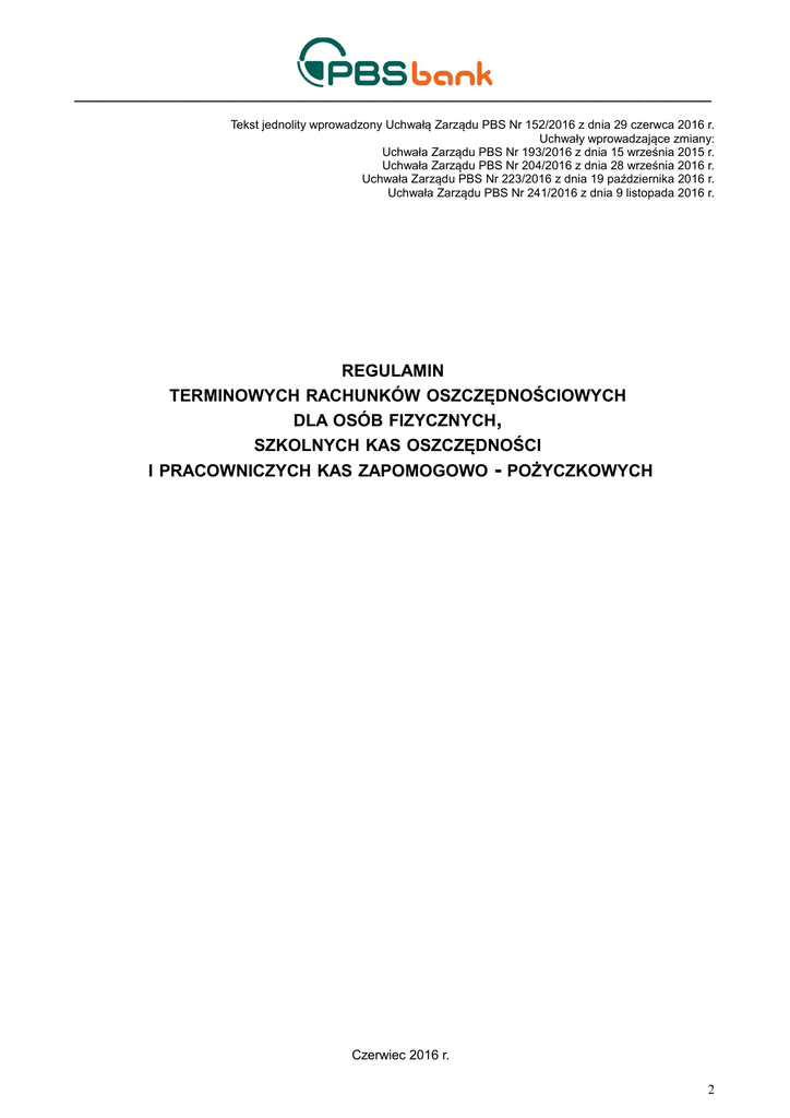 Regulamin terminowych rachunków oszczędnościowych dla