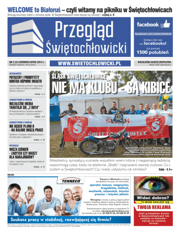 WELCOME to Białoruś – czyli witamy na pikniku w Świętochłowicach Wracają koszmary rodem z minionej epoki. W Świętochłowicach znów stosuje się cenzurę! - czytaj s. 8 1500 WWW.SWIETOCHLOWICKI.PL AKTUALNOŚCI POTRZEBY I PRIORYTETY KONTRA UŚPIONE MIASTO Działania jednostek gminnych mogą świadczyć że miastu nie zależy na współpracy z Bankiem Żywności? Czytaj – s. 3 ?????? NR 3 (5) CZERWIEC/LIPIEC 2014 r. Redaktor wydania: Anna Janus NIEZALEŻNA GAZETA BEZPŁATNA nakład 5000 egzemplarzy ŚLĄSK ŚWIĘTOCHŁOWICE NIE MA KLUBU - SĄ KIBICE- SUBIEKTYWNIE O MIEŚCIE NIEZALEŻNE MEDIA TRAKTUJE SIĘ „Z BUTA” W Świętochłowicach niezależne wydawnictwa są lekceważone i dyskryminowane! Czytaj – s. 5 SUBIEKTYWNIE O MIEŚCIE NIE BĘDZIE PLANU B - NA KALINIE RUSZĄ PRACE Spotkanie z inicjatywy mieszkańców przyniosło wiele pytań i wątpliwości Czytaj – s. 10 MISZMASZ WIEŻA CIŚNIEŃ - ZABYTEK CZY MASZT DLA NADAJNIKÓW? Jeden z najważniejszych zabytków miasta od lat zapada w ruinę Czytaj – s. 15 Członkowie społeczności Speedway Śląsk Świętochłowice na pikniku organizacji pozarządowych. W środku Paweł Waloszek – świętochłowiczanin, legenda polskiego żużla Mieszkańcy, sympatycy a przede wszystkim wierni kibice z niegasnącą radością wspominają czasy, kiedy na stadionie „Skałki” rozgrywano zawody żużlowe. Co z żużlem w Świętochłowicach? Czy i kiedy usłyszymy ryk silników? Czytaj – S. 6 ▶ REKLAMA Tenneco w Gliwicach poszukuje kandydatów do pracy na stanowiska: operator maszyn, magazynier, brygadzista, elektryk, mechanik, automatyk, inżynier procesu i inżynier jakości. Oferujemy: umowę o pracę, bogaty pakiet socjalny, bezpłatny dojazd z terenu: Świętochłowic, Siemianowic, Chorzowa, Rudy Śląskiej i Zabrza. Zainteresowane osoby prosimy o przesłanie CV na adres: [email protected] lub kontakt pod nr tel. 32 338 51 35; 32 338 52 49 Szukasz pracy w stabilnej, rozwijającej się firmie? Informujemy, iż skontaktujemy się z wybranymi kandydatami. Prosimy o dołączenie do CV następującej klauzuli: „Wyrażam zgodę na przetwarzanie moich danych osobowych dla potrzeb procesu rekrutacji (zgodnie z zasadami ustawy o ochronie danych osobowych z dnia 29.08.1997 Dz.U. 133 poz.833)”. WYDARZENIA I AKTUALNOŚCI 2 Przegląd Świętochłowicki POWSTAJE FILM do ekspozycji Muzeum Powstań Śląskich Trwają prace nad realizacją ekspozycji Muzeum Powstań Śląskich w Świętochłowicach. Z tej okazji do miasta zjechali filmowcy. Przygotują opowieść, która pomoże zrozumieć wydarzenia tamtych czasów i będzie pełnić rolę przewodnika. O prócz tradycyjnej ekspozycji Muzeum Powstań Śląskich będzie oferować szereg elementów uatrakcyjniających zwiedzanie. Już na początku podróży film fabularny wprowadzi gości w tematykę powstań śląskich. Rolę przewodnika obejmie chłopiec Franek, główny bohater filmu. Jego historia będzie przeplatała się z historią powstań. Całość zostanie podzielona na 12 części odpowiadających liczbie sal. - Film fabularny będzie fikcją opartą na wydarzeniach historycznych. Przedstawimy w nim relacje społeczne zachodzące między Polakami i Niemcami w tamtym czasie. Ścieżka wiodąca, to nic innego jak filmowy przewodnik zawierający wydarzenia historyczne. Elementy fabularyzowane, scenki rodzajowe będą przeplatać się z materiałami archiwalnymi – zapowiada Zuza Małycha, kierownik produkcji „Franka”. Coraz częściej można oglądać interaktywne muzea, jednak świętochłowicka ekspozycja będzie nieco inna. - W wielu muzeach są wprowadzane elementy filmowe. Zazwyczaj, jednak stanowią jedynie dodatek do ekspozycji. W Muzeum Powstań Śląskich film będzie towarzyszył gościom na każdym etapie zwiedzania – twierdzi Iwona Szopa, dyrektor Muzeum Powstań Śląskich w Świętochłowicach. Do końca tego tygodnia Świętochłowice staną się planem filmowym. Kolejne sceny będą kręcone w dzielnicy Chropaczów, w Centrum oraz na terenach pohutniczych tzw. Ajsce. W kolejnych dniach realizacja tego przedsięwzięcia przeniesie się także do Zabrza, Pszczyny, Katowic, Rudy Śląskiej oraz Warszawy. Dziś ekipę filmową można było spotkać w restauracji przy ul. Łagiewnickiej. Aktorzy obecni na planie cieszą się, że film z ich udziałem trafi do świętochłowickiego muzeum. - Opowiadanie o historii powstań śląskich to bardzo ważna rzecz. Szczególnie, że tamtych czasów nie pamiętają już nasi rodzice. Film będzie żywym elementem ekspozycji, który z pewnością trafi do młodzieży. Gram syna, który nie brał udziału w powstaniu ze względu na dzieci i żonę. Brat walczył, ale po przeciwnej stronie. Ta sytuacja rodzi dylematy, które były częste na Śląsku – twierdzi Krzysztof Respondek. Więź ze Śląskiem odczuwa także Marian Dziędziel - jest mi przyjemnie, że mogę mówić na temat Powstań Śląskich. Ta tematyka jest mi bliska. Gram Johanna - ojca dwóch synów, jeden z nich poszedł do powstania – mówi aktor. W filmie zagrają m.in. Franciszek Pieczka (Franek współcześnie), Marian Dziędziel ( Johann), Krzysztof Respondek (Jan), Artur Święs (Peter), Robert Talarczyk (Jabłonka), Arkadiusz Janiczek (Zygmunt) i Janusz Niebudek (Korfanty). Film, jest częścią powstającej ekspozycji. Jej koszt wyniesie ponad 4 mln zł, z czego część stanowią środki pozyskane przez miasto z Ministerstwa Kultury i Dziedzictwa Narodowego. Natomiast całkowity koszt remontu i przebudowy zabytkowego budynku przy ul. Polaka 1 wynosi 9 mln 324 tys. zł. Inwestycja została dofinansowana ze środków unijnych w wysokości 7 mln 884 tys. zł. źródło: Urząd Miasta Świętochłowice SZKOLNE INICJATYWY W SALEZJAŃSKIM ZESPOLE SZKÓŁ PUBLICZNYCH W ŚWIĘTOCHŁOWICACH Nauka przez zabawę, zabawa przez naukę N asza placówka jak wszystkie szkoły w Polsce ma m.in. za zadanie nauczyć swoich wychowanków języków obcych. Szkoły 