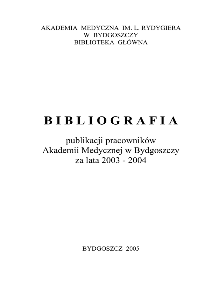 Bibliografia Publikacji Pracowników Collegium Medicum 2003-2004
