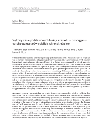 PRZEDSIĘBIORCZOŚĆ – EDUKACJA ENTREPRENEURSHIP – EDUCATION 12 2016 ISSN 2083-3296 Michał Żemła Uniwersytet Pedagogiczny w Krakowie, Polska Pedagogical University of Cracow, Poland Wykorzystanie podstawowych funkcji Internetu w przyciąganiu gości przez gestorów polskich schronisk górskich The Use of Basic Internet Functions in Attracting Visitors by Operators of Polish Mountain Huts Streszczenie: Prowadzenie schroniska górskiego jest specyficzną formą przedsiębiorczości, co przejawia się na wielu płaszczyznach. Jedną z nich jest relatywna trudność w wykorzystaniu nowych środków komunikacji z potencjalnymi klientami. Obiekty te w Polsce, często podupadłe w okresie przemian ustrojowych, obecnie zmuszone są do definiowania na nowo swojej roli na rynku turystycznym, a także aktywnego poszukiwania nowych segmentów gości. Celem badań jest ocena stopnia wykorzystania Internetu w komunikacji z potencjalnymi klientami przez gestorów polskich schronisk górskich. Dla realizacji celu analizie poddano strony internetowe wszystkich polskich schronisk górskich, a także rozesłano ankiety do gestorów schronisk oraz przeprowadzono badania techniką mystery shopping, wysyłając wiadomości e-mail na adresy podane na przeanalizowanych witrynach. Wyniki badań pokazują, że gestorzy polskich schronisk próbują wykorzystać Internet w swoich działaniach promocyjnych, jednak są to jeszcze działania nieskoordynowane, mocno przypadkowe i stosunkowo rzadkie. Wprawdzie niemal wszystkie polskie schroniska mają swoje witryny internetowe, jednak problemem pozostaje brak wersji obcojęzycznych. Gestorzy nie przykładają też istotnej wagi do działań promocyjnych z wykorzystaniem Internetu, a przesyłanie zwrotnych informacji dotyczących rezerwacji i pytań otrzymywanych drogą internetową okazuje się znacznie poniżej oczekiwań. Abstract: Operating a mountain hut is a specific form of entrepreneurship, which is visible in plenty of issues. One is a relative difficulty with the use of new communication channels with customers. Mountain huts in Poland, often dilapidated during system changes, nowadays are forced to redefine their role on the tourism market, and to actively search for new segments of visitors. The aim of the paper is evaluation of the degree of the use of Internet in communication with potential customers by the operators of Polish mountain huts. To realize this aim, the analysis of web-pages of all Polish huts was conducted, and the questionnaires were sent to huts’ operators, as well as research with mystery shopping method was applied, which was done by sending e-mail messages to addresses presented in analyzed web-pages. The results convince that Polish mountain huts’ operators are trying to use Internet in their promotional actions, still these are chaotic, accidental and also rare actions. Almost all huts posses their web-pages, but the problem is connected with lack of foreign languages versions. Operators do not treat Internet promotion very seriously and the response rate turned out to be much lower than expected. Wykorzystanie podstawowych funkcji Internetu w przyciąganiu gości… 275 Słowa kluczowe: mystery shopping; polskie góry; schroniska górskie; wykorzystanie Internetu w komunikacji z rynkiem Key words: mountain huts; mystery shopping; Polish mountains; use of Internet in market communication Otrzymano: 28 września 2015 Received: 28 September 2015 Zaakceptowano: 22 lutego 2016 Accepted: 22 February 2016 Sugerowana cytacja/Suggested citation: Żemła, M. (2016). Wykorzystanie podstawowych funkcji Internetu w przyciąganiu gości przez gestorów polskich schronisk górskich. Przedsiębiorczość – Edukacja, 12, 274–281. Wstęp Schroniska górskie na tle innych obiektów noclegowych mają kilka specyficznych cech, które istotnie utrudniają implementację zasad ekonomiki i zarządzania obiektami noclegowymi (Zarzycki, Stosik, Grobelny, 2006). Zatem i postawy przedsiębiorcze gestorów schronisk mogą się różnić od schematu obserwowanego w przypadku innych przedsiębiorstw turystycznych. Istotnym elementem, który musi być brany pod uwagę w zarządzaniu obiektami tego typu, jest kwestia ich lokalizacji na terenach wrażliwych i wartościowych przyrodniczo. W wielu przypadkach ważnym problemem jest też kwestia bezpieczeństwa potencjalnych gości (Foris, Nicolau, Foris, Grecu, 2014). Także sama budowa, a wcześniej wybór lokalizacji pod nią stanowią w tym przypadku znacznie bardziej skomplikowane przedsięwzięcie niż budowa obiektu noclegowego o analogicznych gabarytach w terenie zabudowanym. Podobnie, już po ukończeniu budowy, podczas funkcjonowania schroniska górskiego, rozwiązania wymagają problemy logistyczne związane z trudnościami technicznymi i kosztami zaopatrzenia (Żemła, 2014). Szczególne muszą być także zasady rekrutacji i zarządzania personelem. Bardzo specyficzny jest też sam produkt schronisk górskich oferujących m.in. niski standard noclegów (Szczechowicz, 2006), co wpływa na sposób oceny jakości tego produktu przez gości (Duglio, Beltramo, 2014). W przypadku wielu obiektów w Polsce oraz za granicą relatywnie coraz większe znaczenie w strukturze przychodów gestora schroniska mają usługi gastronomiczne. Takich specyficznych cech schronisk górskich na tle ogółu obiektów noclegowych z pewnością można wymienić więcej, brakuje jednak w literaturze przedmiotu opracowania, w którym charakterystyka ta zostałaby dokonana w sposób zbiorczy. Temat zarządzania schroniskami górskimi jest podnoszony w literaturze tak krajowej, jak i zagranicznej bardzo rzadko. Trzeba też pamiętać, że schroniska górskie w poszczególnych krajach różnią się między sobą istotnie wielkością, standardem wyposażenia i lokalizacją (Kurek, 2004), co także różnicuje znaczenie poszczególnych problemów związanych z zarządzaniem nimi. Co więcej, podobne różnice dotyczą obiekt