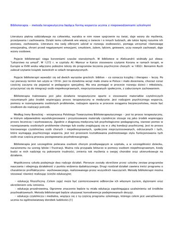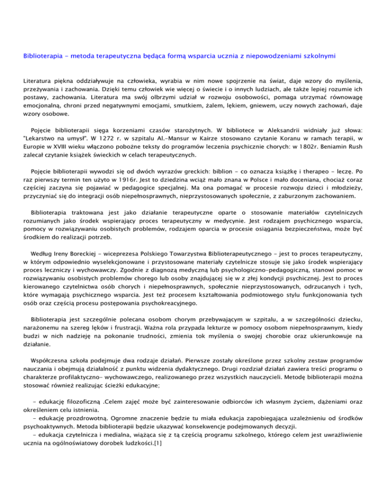 Biblioterapia - metoda terapeutyczna będąca formą wsparcia ucznia