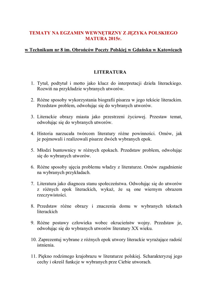 Matura`2015 – tematy -język polski - Witaj na stonie Technikum nr 8