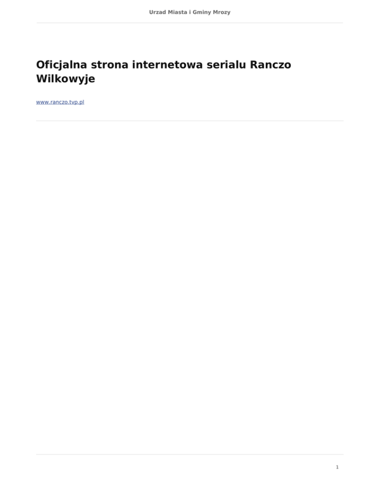 Urzad Miasta i Gminy Mrozy Oficjalna strona internetowa serialu Ranczo Wilkowyje www.ranczo.tvp.pl 1