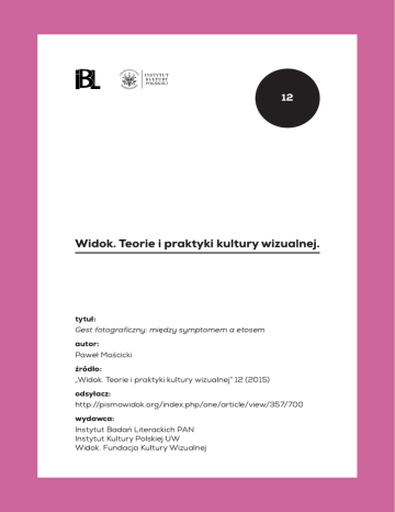 Gest fotograficzny - Widok. Teorie i praktyki kultury wizualnej