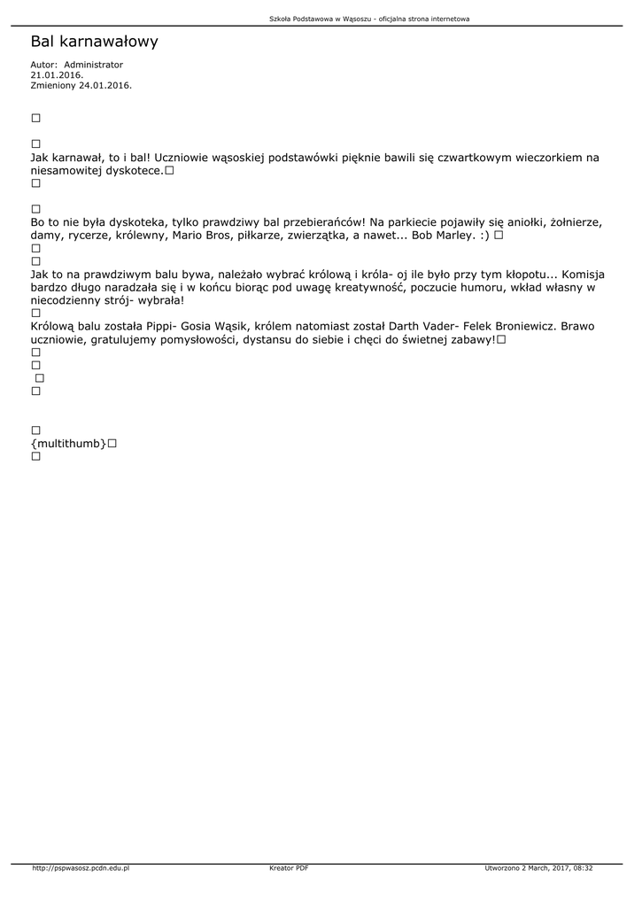 Bal karnawałowy - Szkoła Podstawowa w Wąsoszu