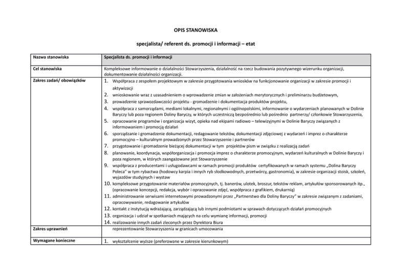OPIS STANOWISKA specjalista/ referent ds. promocji i informacji – etat