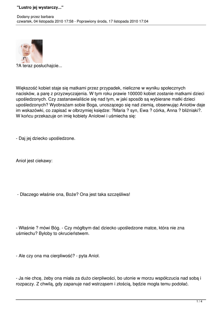 - Właśnie ? mówi Bóg. - Czy mógłbym dać dziecko upośledzone matce, która nie zna