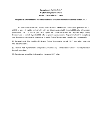 Zarządzenie Nr 231/2017 Wójta Gminy Sieroszewice z dnia 12