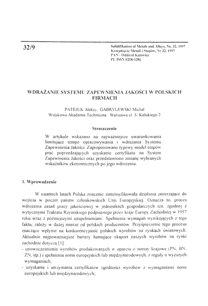 wdrażanie systemu zapewnienia .jakości w polskich firmach