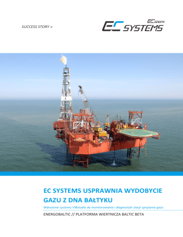 SUCCESS STORY » EC SYSTEMS USPRAWNIA WYDOBYCIE GAZU Z DNA BAŁTYKU Wdrożenie systemu VIBstudio do monitorowania i diagnostyki stacji sprężania gazu ENERGOBALTIC // PLATFORMA WIERTNICZA BALTIC BETA 1.1 O Energobaltic Spółka Energobaltic powstała w 1997 roku i jest obecnie „spółką-córką” LOTOS-Petrobaltic, częścią Grupy Kapitałowej LOTOS. Podstawowym obszarem działalności Energobaltic jest produkcja i sprzedaż LPG (mieszanina gazów propan-butan), kondensatu gazu naturalnego (KGN) oraz energii elektrycznej i energii cieplnej. Energobaltic przerabia i utylizuje gaz stowarzyszony z ropą naftową wydobywaną przez LOTOS-Petrobaltic z dna Morza Bałtyckiego na platformie Baltic Beta w ramach eksploatacji w morskiej kopalni ropy. 1.2 Opis wdrożenia EC Systems wdrożyła i uruchomiła w listopadzie 2007 r. na platformie wiertniczej Baltic Beta system VIBstudio służący do ciągłego monitorowania stanu łożysk, zaworów, wału oraz innych elementów ruchomych czterostopniowego kompresora tłokowego Dresser-Rand będącego „sercem” Stacji Sprężania Gazu ziemnego (SSG). Działanie systemu VIBstudio opiera się na monitorowaniu parametrów pracy stacji oraz wielopunktowym pomiarze drgań obejmującym: komory sprężania, komory pośrednie, ułożyskowanie wału korbowego kompresora i łożyska silnika. Pomiar odbywa się przy pomocy czujników piezoelektrycznych, w standardzie ICP® typu EXM622A01, przeznaczonych do zastosowań w strefie zagrożonej wybuchem. Wszystkie kanały pomiarowe z uwagi na pracę w strefie EX separowane są barierami bezpieczeństwa. Zmierzone wartości drgań przetwarzane są na postać cyfrową przez system akwizycji danych, kondycjonowane, a następnie przekazywane do bazy danych systemu VIBstudio w celu dalszej, szczegółowej analizy. Z uwagi na wielostopniową budowę i znaczny rozmiar kompresora, akwizycja danych składa się z dwóch podsystemów po 10 kanałów każdy, synchronizowanych wspólnym znacznikiem fazy obrotu wału napędowego kompresora. Do wizualizacji danych służy stacja operatorska, zainstalowana w pomieszczeniu nastawni. Komunikacja miedzy szafą z systemem monitorującym, a stacją operatorską zrealizowana jest za pomocą sieci Ethernet. Możliwy jest także zdalny dostęp do danych przy wykorzystaniu modemu str. 2 GSM. Z jego pomocą, EC Systems dostarcza Energobaltic zdalne wsparcie diagnostyczne w ramach usługi VIBcare. 1.3 Działanie systemu w praktyce W 2008 r. system diagnostyczny VIBstudio zgłosił raport alarmowy z uwagi na zawyżoną wartość drgań kompresora i silnika. Analiza danych wykazała podwyższony poziom analiz szerokopasmowych sugerujący usterkę komponentów mechanicznych generujących drgania w zakresie pierwszych trzech częstotliwości obrotowych wału napędowego. Zgodnie z rekomendacjami diagnostów EC Systems, we współpracy z załogą platformy Baltic Beta dokonano oględzin kompresora z zewnątrz, oraz wykonano kontrolne pomiary korpusu i cylindrów przyrządem ręcznym a następnie, przy braku widocznych zmian, wstrzymano wydobycie gazu i otwarto pokrywy rewizyjne. Uszkodzeniu uległ wał. Wał pękł w taki sposób, że nastąpiło zazębienie pękniętych części i proces tłoczenia gazu nie został przerwany. Na podstawie raportu alarmowego oraz we współpracy z załogą platformy zdecydowano o czasowym wyłączeniu kompresora z eksploatacji i wymianie wału. Bez systemu nadzoru drgań VIBstudio oraz bez dobrej współpracy z załogą platformy, nieprawidłowość w pracy maszyny nie zostałaby wykryta. Taka sytuacja mogłaby spowodować znaczne lub całkowite zniszczenie urządzenia, bardzo kosztowną naprawę lub nawet konieczność wymiany maszyny (przy wartości korpusu ok. 500 tys. USD) w warunkach morskich. Współpraca między firmami przebiega bez zakłóceń, a monitoring przeprowadzany przez diagnostów EC Systems jest rzetelny i fachowy. Jesteśmy zadowoleni z jakości usługi świadczonej przez EC Systems i rekomendujemy firmę jako solidnego i profesjonalnego partnera. Zbigniew Olejniczak, Zastępca Dyrektora Naczelnego, Szef Zespołu ds. Morskich str. 3