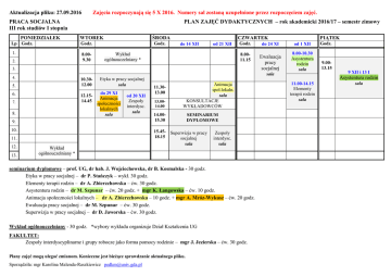 Aktualizacja pliku: 27.09.2016 Zajęcia rozpoczynają się 5 X 2016